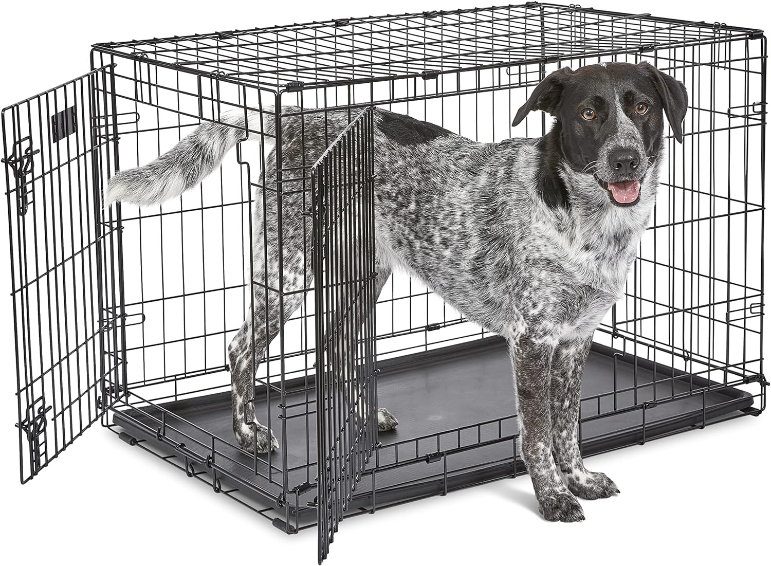 MidWest Homes for Pets 36-Inch Two-Door iCrate Folding Dog Crate with Divider Panel, Leak-Proof Tray & Secure Latches – Metal Wire Kennel for M-L Breeds – Portable, Durable & Easy to Assemble
