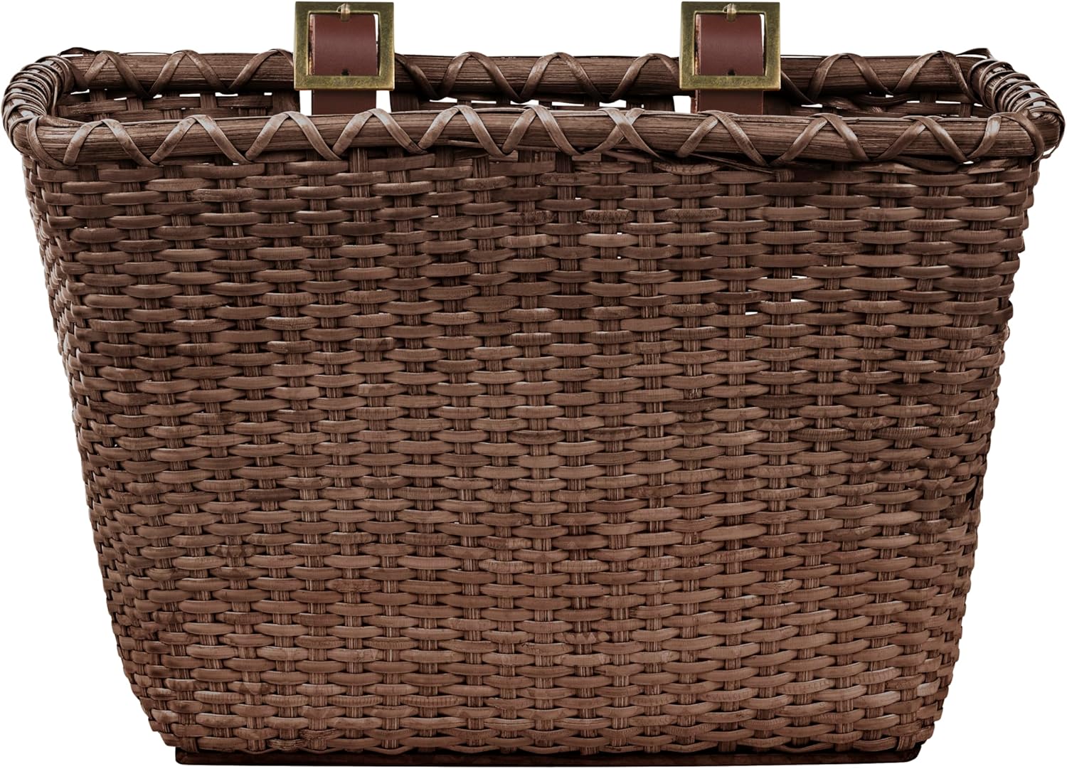 Retrospec Bicycles Cane Woven Rectangular Toto Basket with Authentic Leather Straps and Brass Buckles