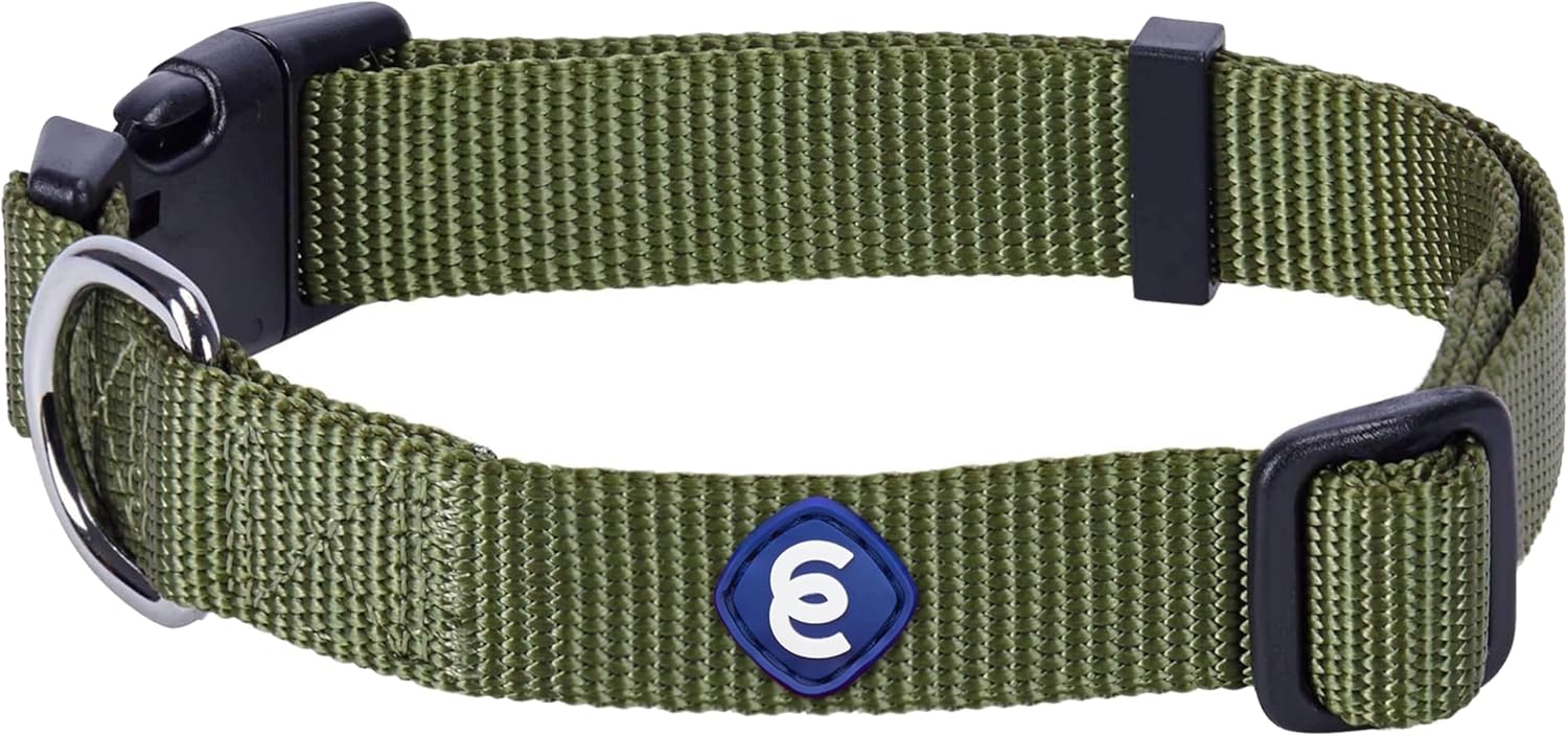 Blueberry Pet Essentials Medium Dog Collar in Military Green | Adjustable & Eco-Friendly Durable Nylon Strap | Classic Collar for Medium Dogs, Boy & Girl Pets