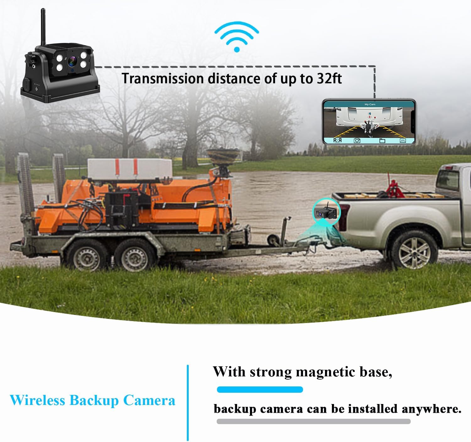 WiFi Magnetic Wireless Backup Camera, LASTBUS Rechargeable 2.4Ghz WiFi Rear Camera for Easy Hitching Gooseneck Horse Boat Travel Trailer Fifth Wheels RV Camper for iPhone iPad Android iOS Smartphone