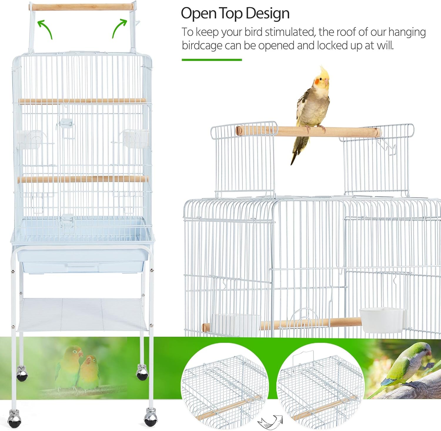 - Make Cleaning a Breeze: To ensure good user experience for pet parents as well, this cage has slide-out tray for collecting bird droppings and easy cleaning