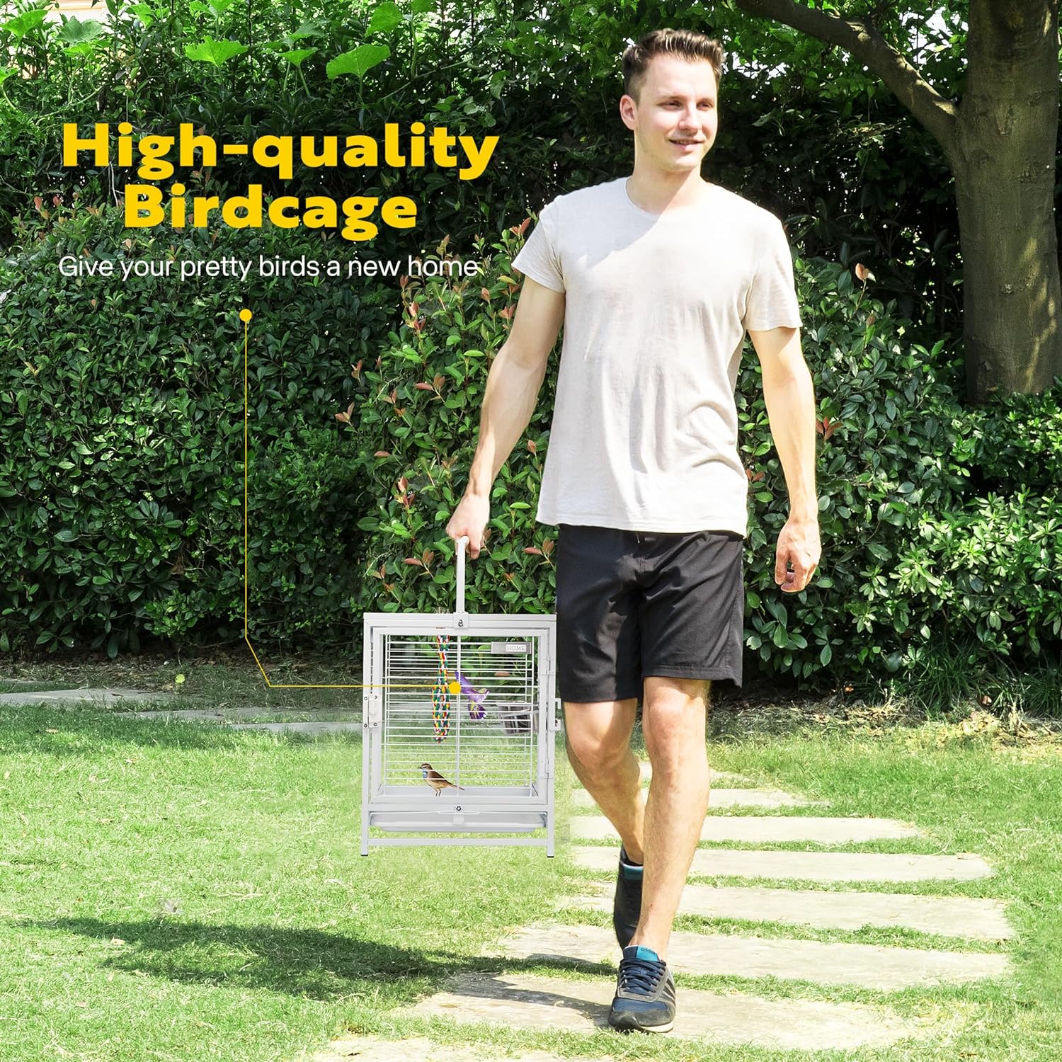 VIVOHOME 19 Inch Wrought Iron Bird Travel Carrier Cage for Parrots Conures Lovebird Cockatiel Parakeets White