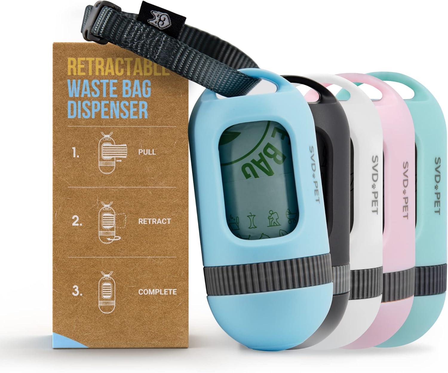 SVD.PET Dog Poop Bag Dispenser, Retractable Waste Bag Fits Any Dog Leash, 15 Waste Bags, Poop Bag Holder, Doggy Walking Accessory (Columbia Blue)