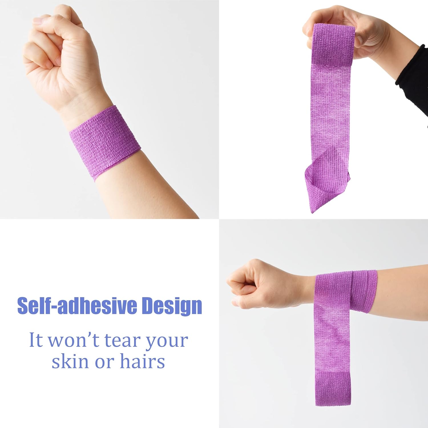 - Self Adhesive: The bandage wrap can stick to itself, stay in place, it can provide a stable support and protection. It will not stick to your hair or skin, so you will not get hurt when removing it.