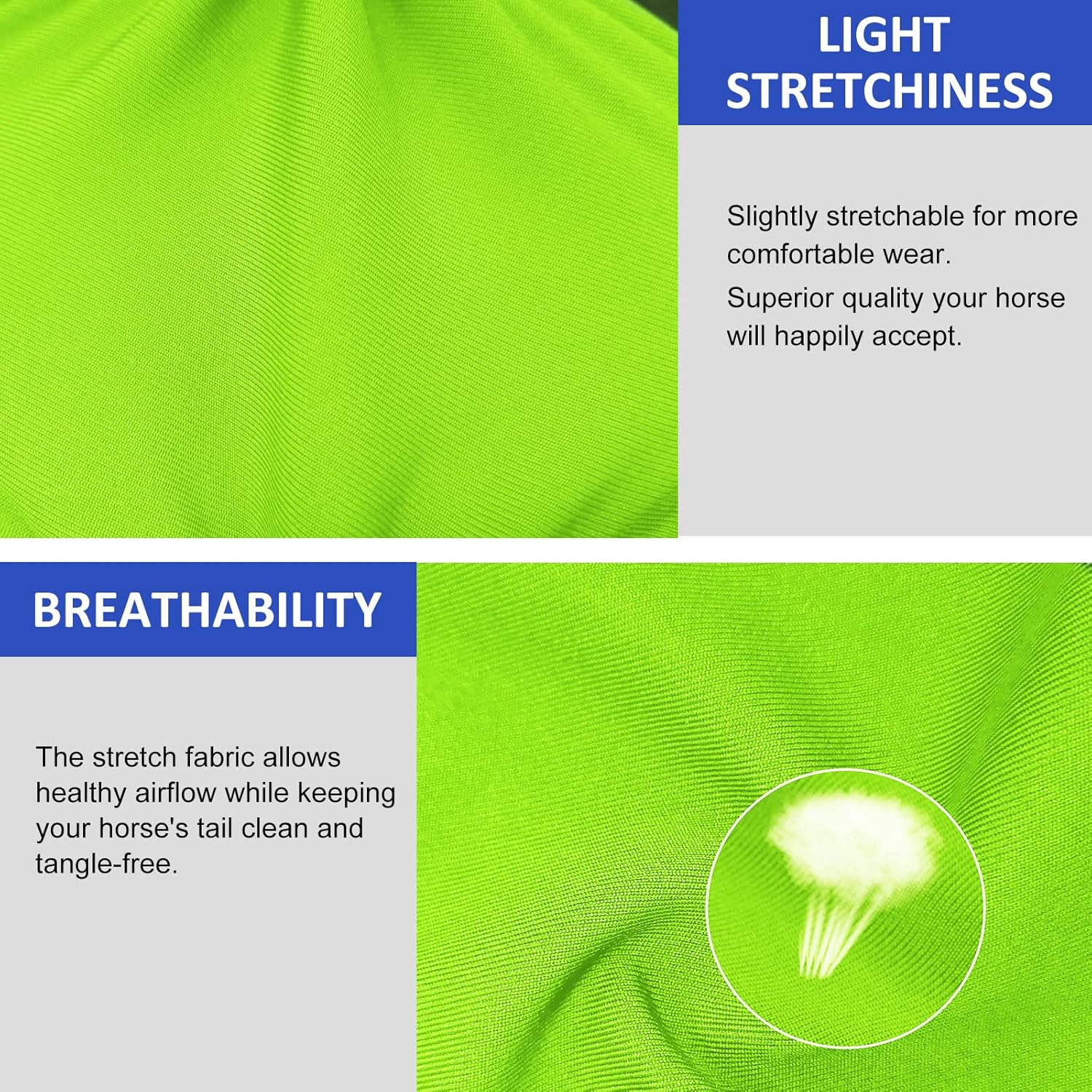 - Breathable: High level of breathability allows healthy airflow while keeping your horse’s tail clean, tangle-free, and lasts in all weather conditions.