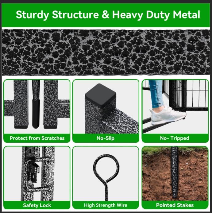 - 【Anti-Rust Coatings Material】Kfvigoho puppy playpen made of heavy-duty metal, sturdy and durable, steel wire smooth and solid, pet dogs couldn't damage or chew it, anti-corrosion coatings and rust-proof process helps panels works well outdoor and extend its life, the indoor and outdoor dog pen great for people with dogs