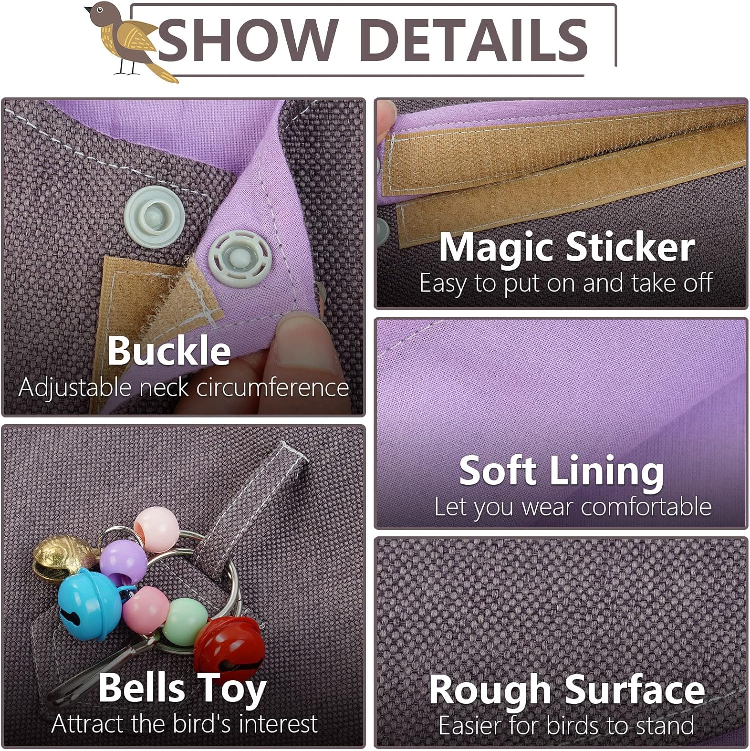 - Two Belts Design: Parrots diaper shawl are two loops on the shoulder top, you can hang a anklet for fixing pet birds, or some toys and treats for them playing on your shoulder