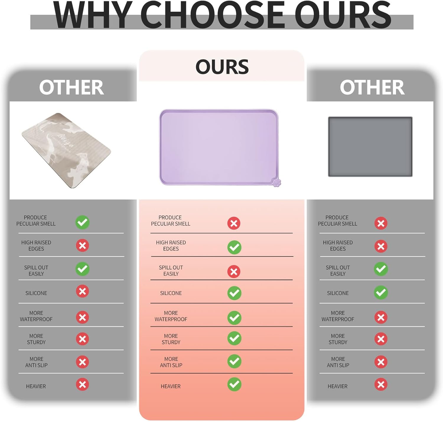 - High-raised edges: say goodbye to messy floors with our mats' high-raised edges that protect your floors from spills and splashes. Keep food and water contained and your floors mess-free