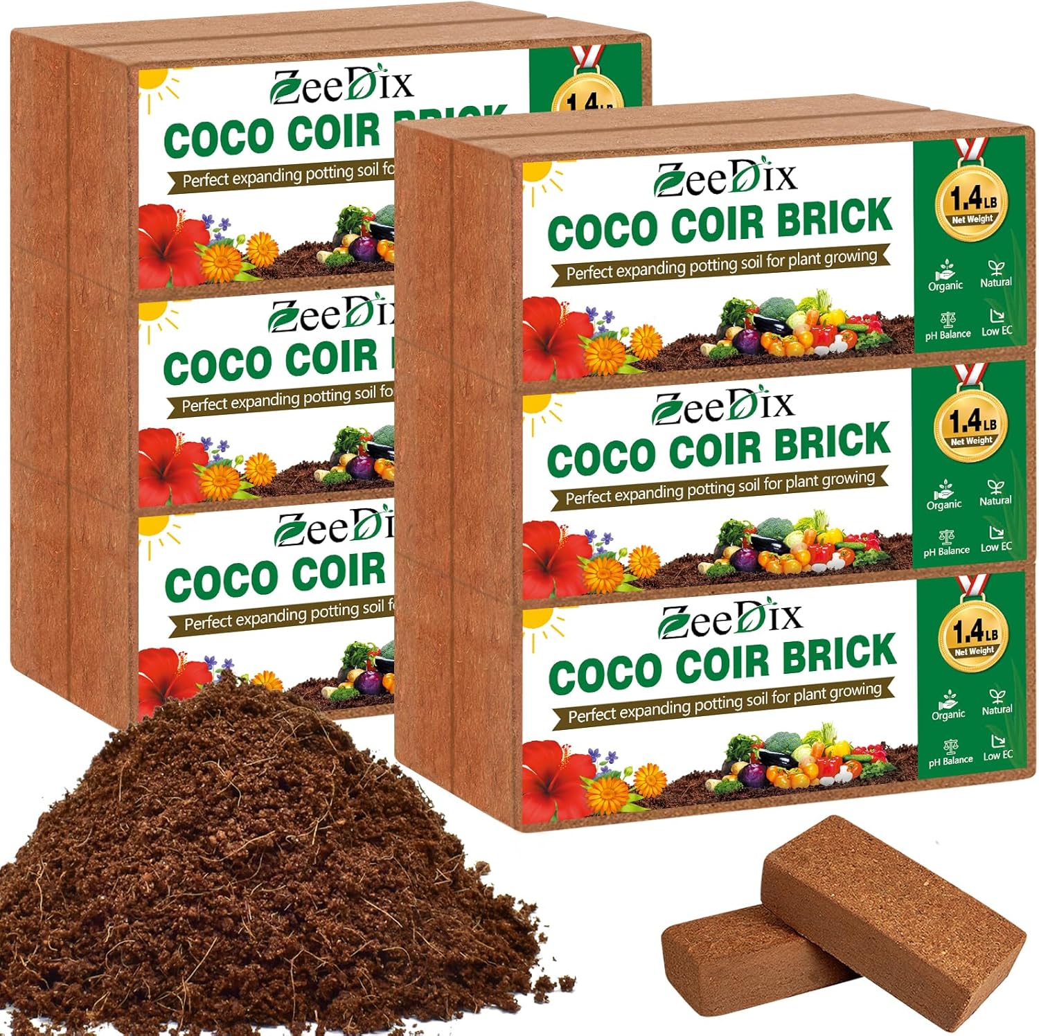 ZeeDix 12 Pcs Premium Coco Coir Brick- Natural Compressed Coconut Coir Bricks Coco Coir Fiber Potting Soil with Low EC and pH Balance, 100% Organic Coconut Coir for Plants Gardening Herbs Reptiles