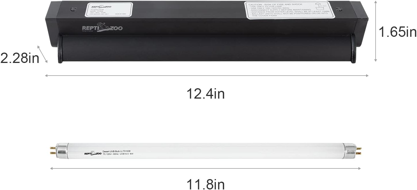 REPTI ZOO T5 HO UVB Lighting Combo Kit with Timer, Reptile Light Fixture Terrarium Hood Comes with Desert 10.0 UVB T5 Lamp Bulb (8W)
