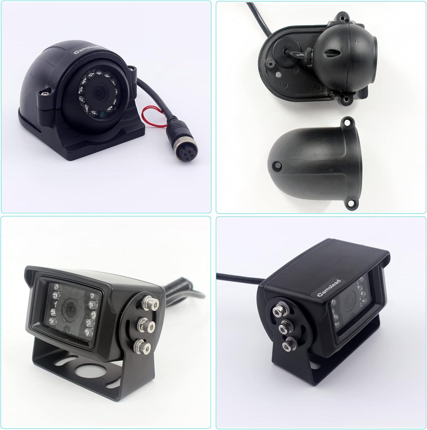 - 【Excellent Full HD Video Quality】1080P 1/2.8" 1080P Image Sensor. Both the rear-view camera and the side-view camera are used sturdy metal shell, the waterproof rating is IP69. Resolution:PAL:1920(H)*1080(V). The frame rate is 1080P@30fps. Operating temperature:-20℃~70℃. IR Night Vision, the backup camera built-in 18 IR LED, the side camera has 12 IR LED. Night vision distance up to 12 meters.