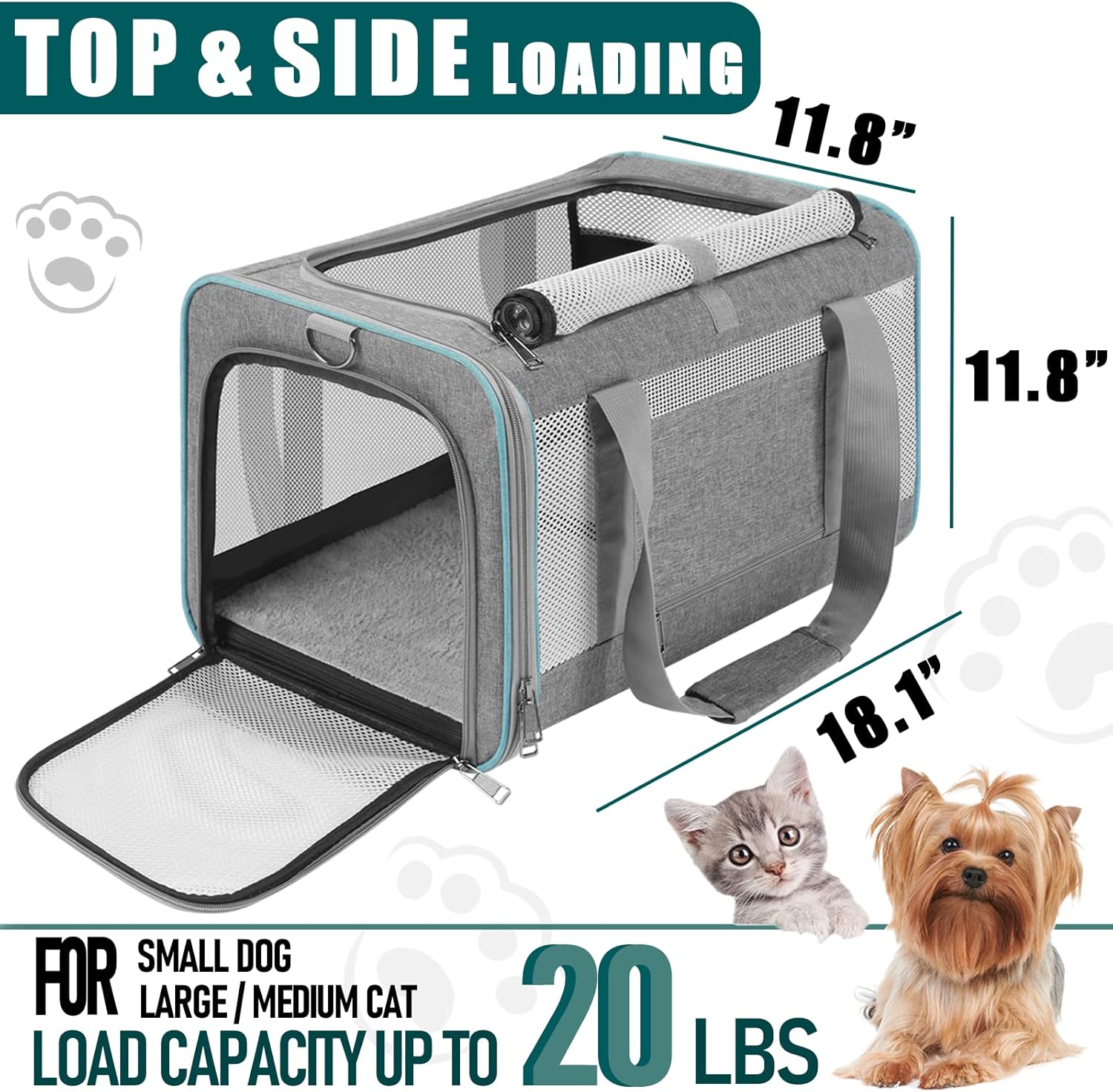 - 18.1 x 11.8 x 11.8 In (LxWxH) Holds pets up to 20 lbs. Ideal for traveling with a medium or large cat, small dog, puppy, or 2 kitties