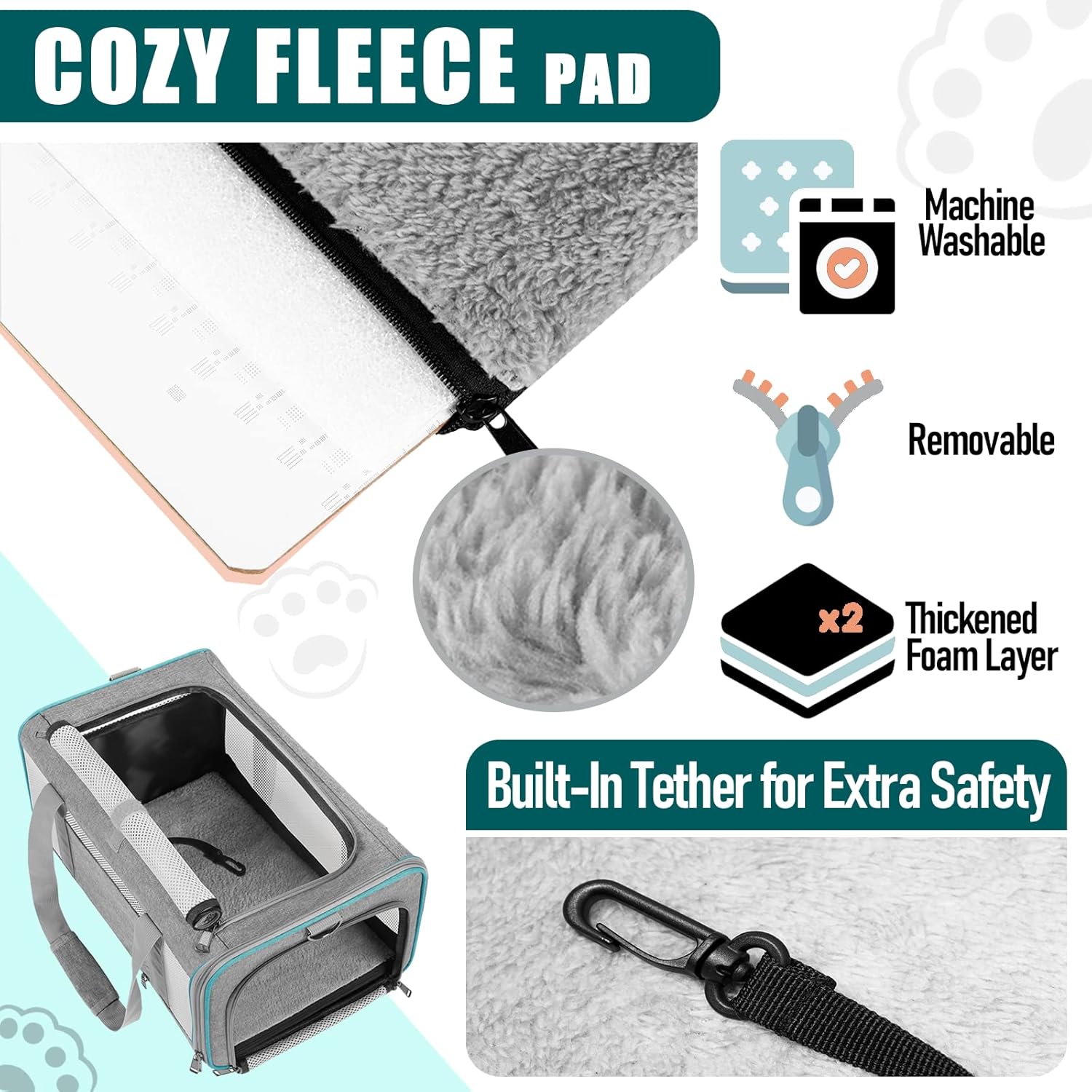 - Secured with auto-locking zippers, your pet can't escape easily by pushing against the zipper from the inside. An inner tether for extra safety. A reflective stripe on the side helps you feel at ease when you walking the dog at night