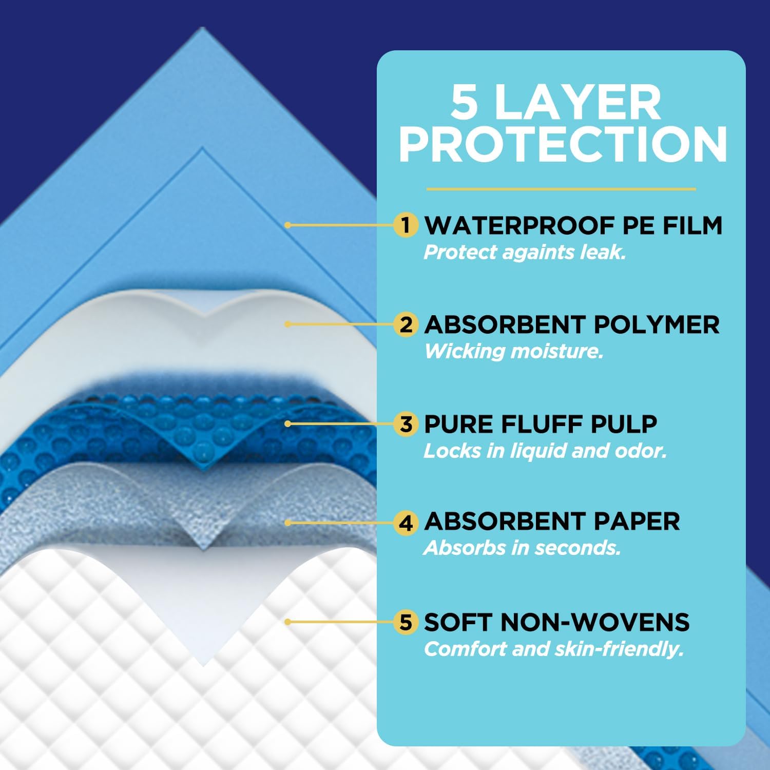 - ✔✔Non-Slip---This disposable chuck pads with a waterproof, non-slip backsheet keep the mat firmly in place on top of the sheet all night long. Disposable underpads 23x36 inches (90cm x 60cm) with maximum absorption capacity.