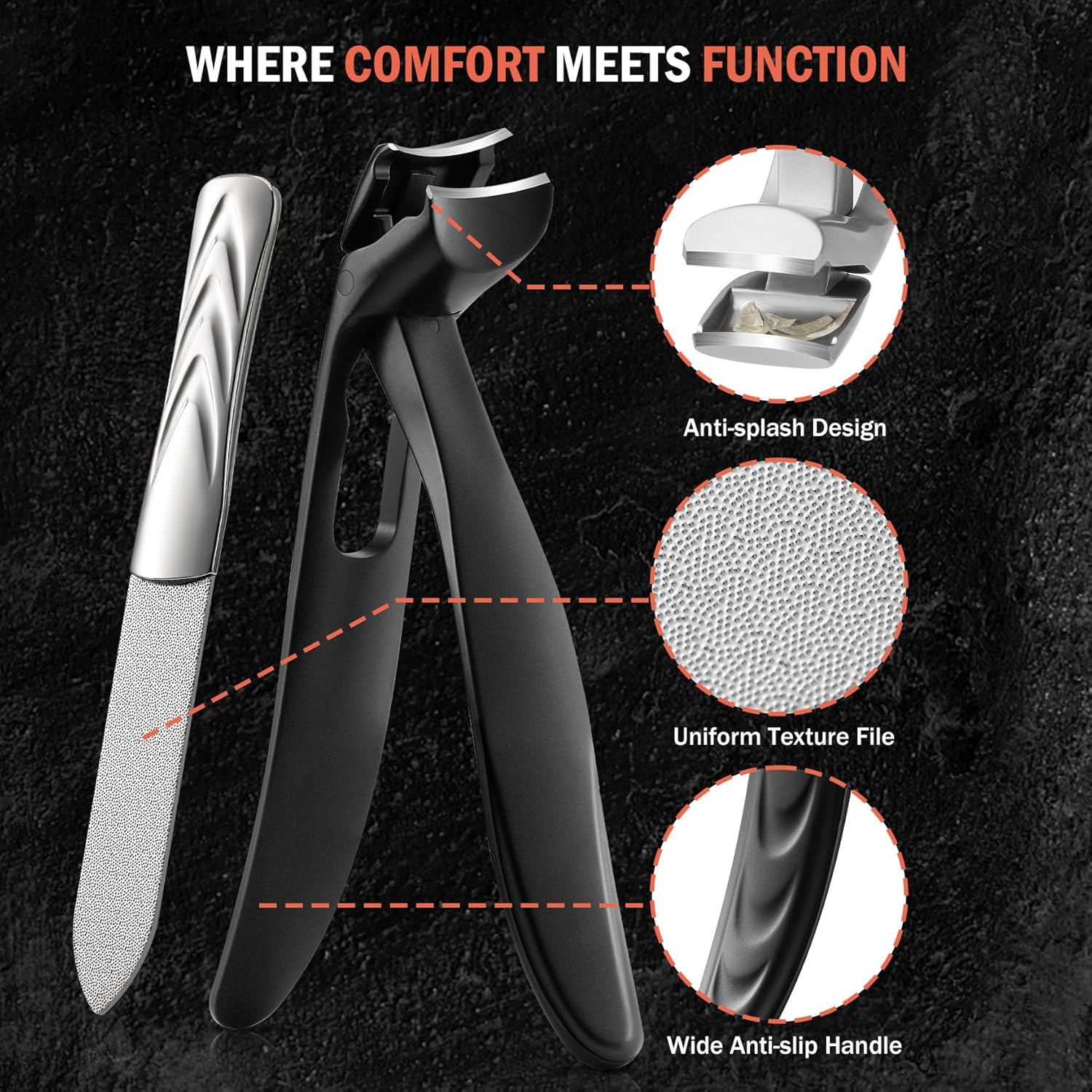 - ๐ฅWHERE COMFORT MEETS FUNCTION - No more fumbling around with awkward fingernail clippers that slip out of your hand. With our toe seniors nail clipper's comfortable grip, you'll have better control for more efficient nail care. Our nail cutter's ergonomic handle is perfect for all nail types, so you can achieve a professional-looking manicure or pedicure from the comfort of your own home.