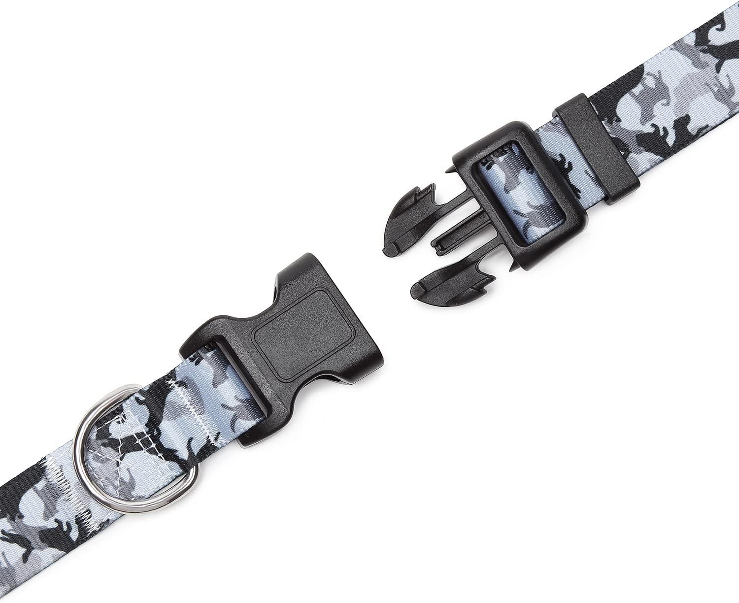 Mercano Adjustable Dog Collar - Special Design Patterns, Soft Nylon Comfortable Durable Pet Collar for Small Medium Large Dogs (L, Dog Camouflage Grey)