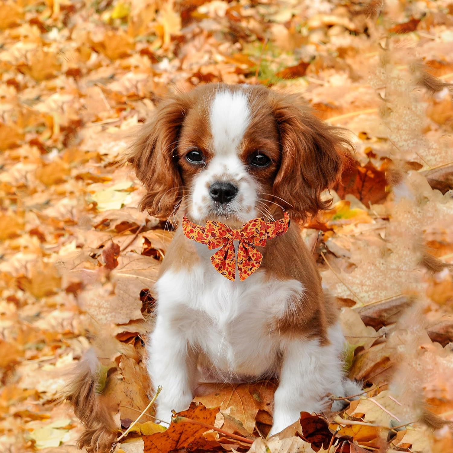 Lionet Paws Dog Collar with Bowtie - Cute Cotton Adjustable Fall Bowtie Dog Collar with Metal Buckle for Small Medium Large Dog Girl Boy Gift, XS, Neck 8-12in