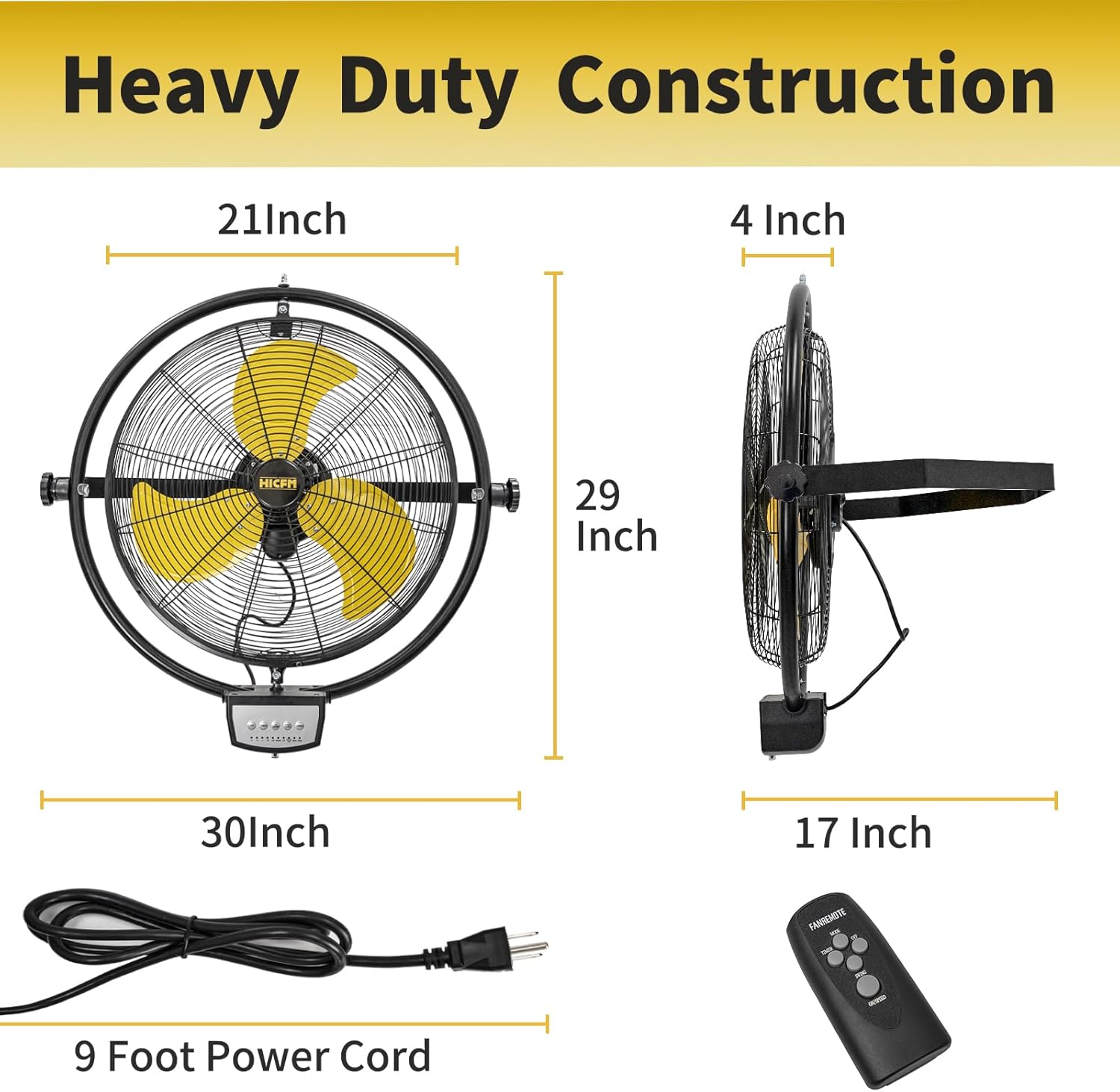 - 【Easy Set Up】: This Wall Fan comes with complete build up assembly structure in package. The whole installation just takes 4 bolts for mounting on wall. Free up the floor space by wall-mounted without cluttering your area. HICFM’s new technology carry longer air movement. Maximum 8.0m/s airflow. Wind noise 61dB by 10feet away.