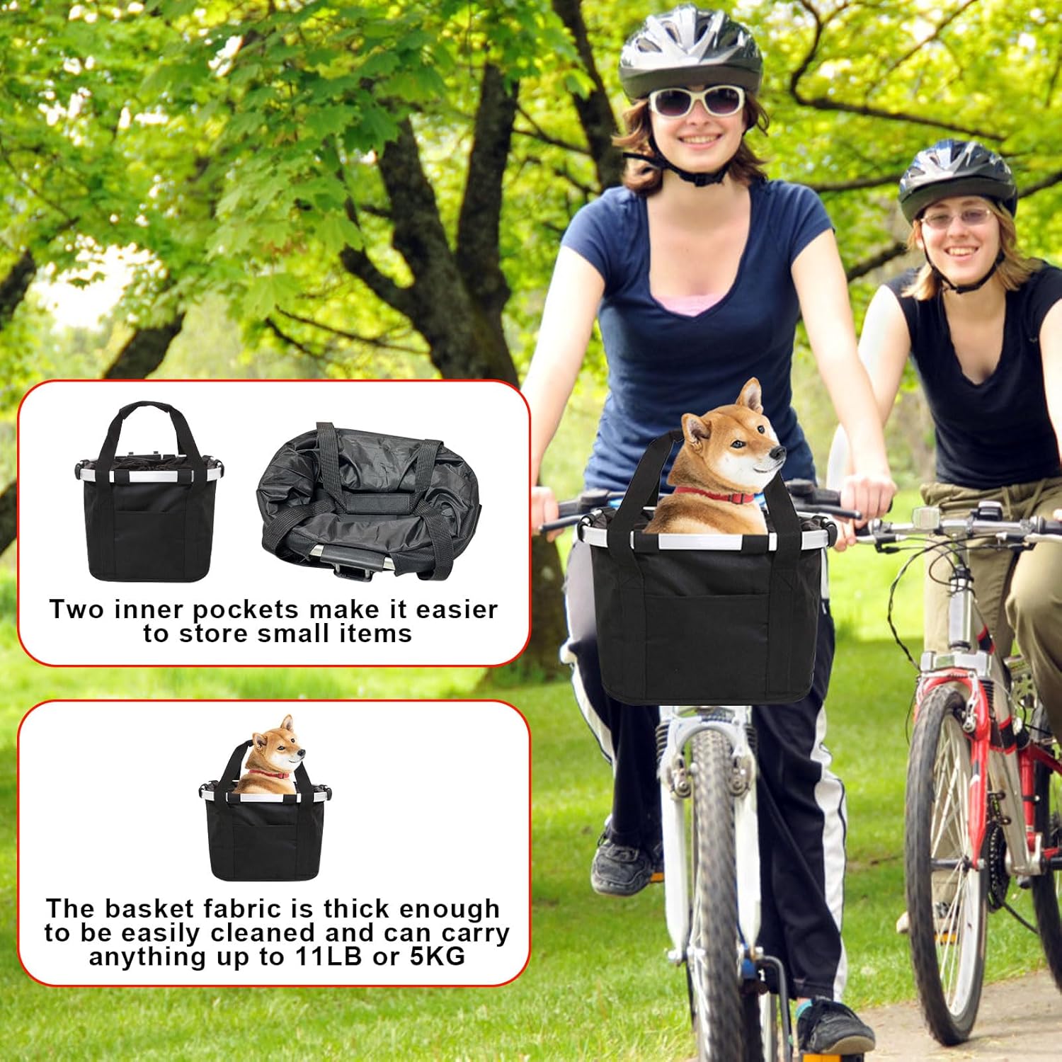 - 【Waterproof Material】: Our dog bike basket is made of wear-resistant oxford fabric with a waterproof coating inside, so you won't be afraid of getting wet even when you ride in the rain. It has a strong carrying capacity of up to 11 pounds, perfect for transporting items.