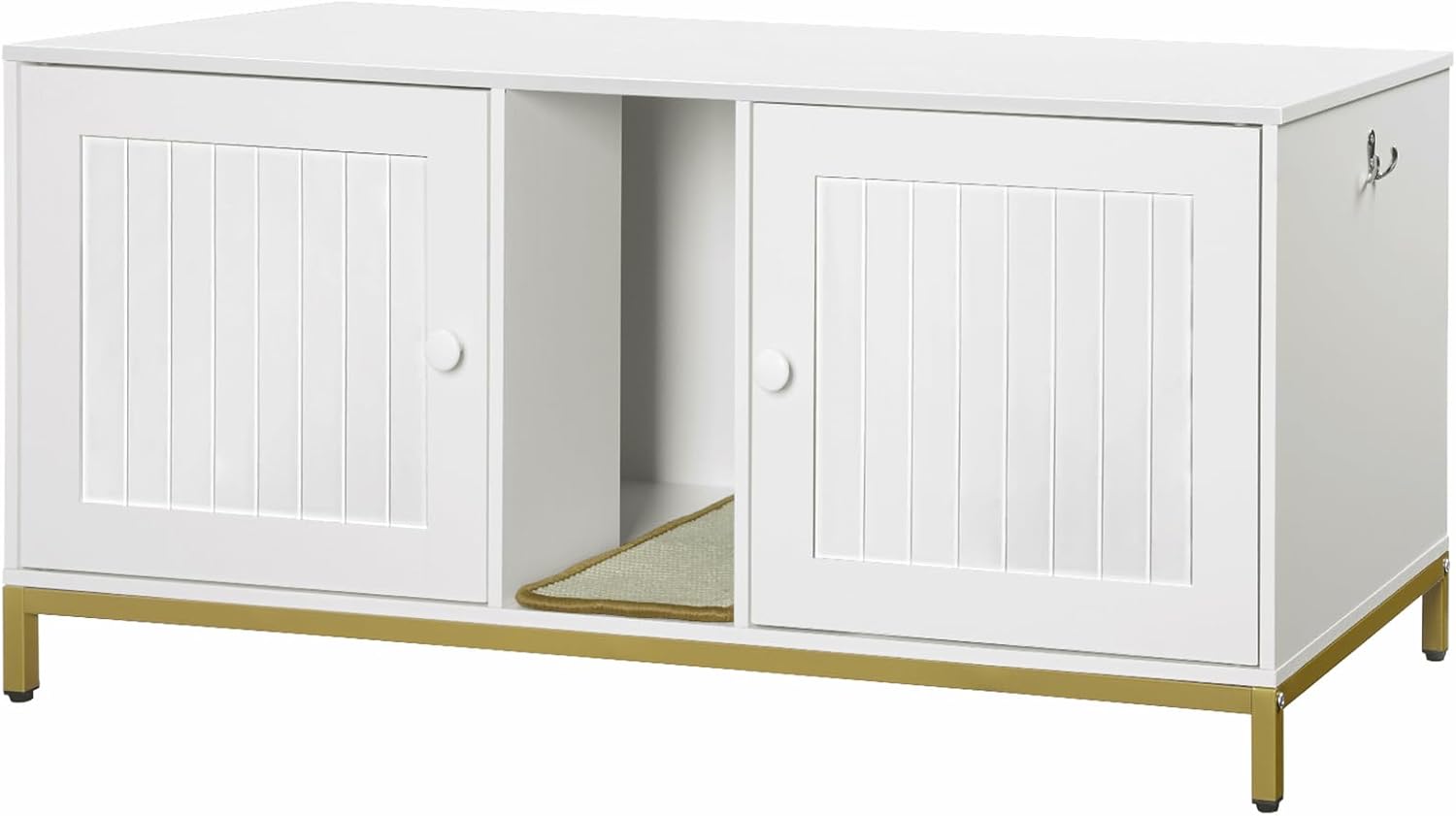 - Stylish Appearance: Classic white-gold color scheme and unique grooved doors endow the dog proof litter box enclosure with elegant and appealing tone, which is eye-catching and easily fits into any home decor