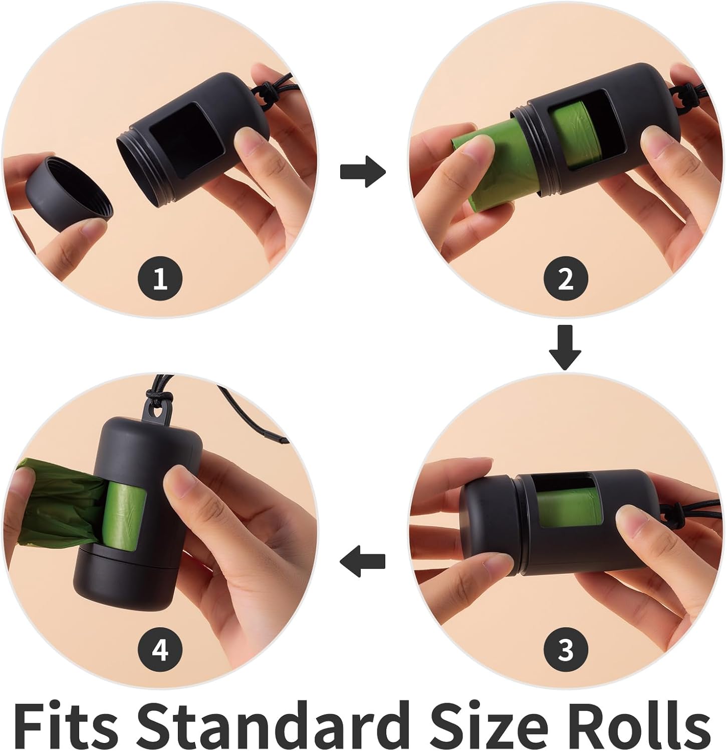 - Universal Fits: these pet waste bag holders fits all standard dog poop bag rolls,the large windows allows you to rotate the bag roll easily.Handy and portable to use.