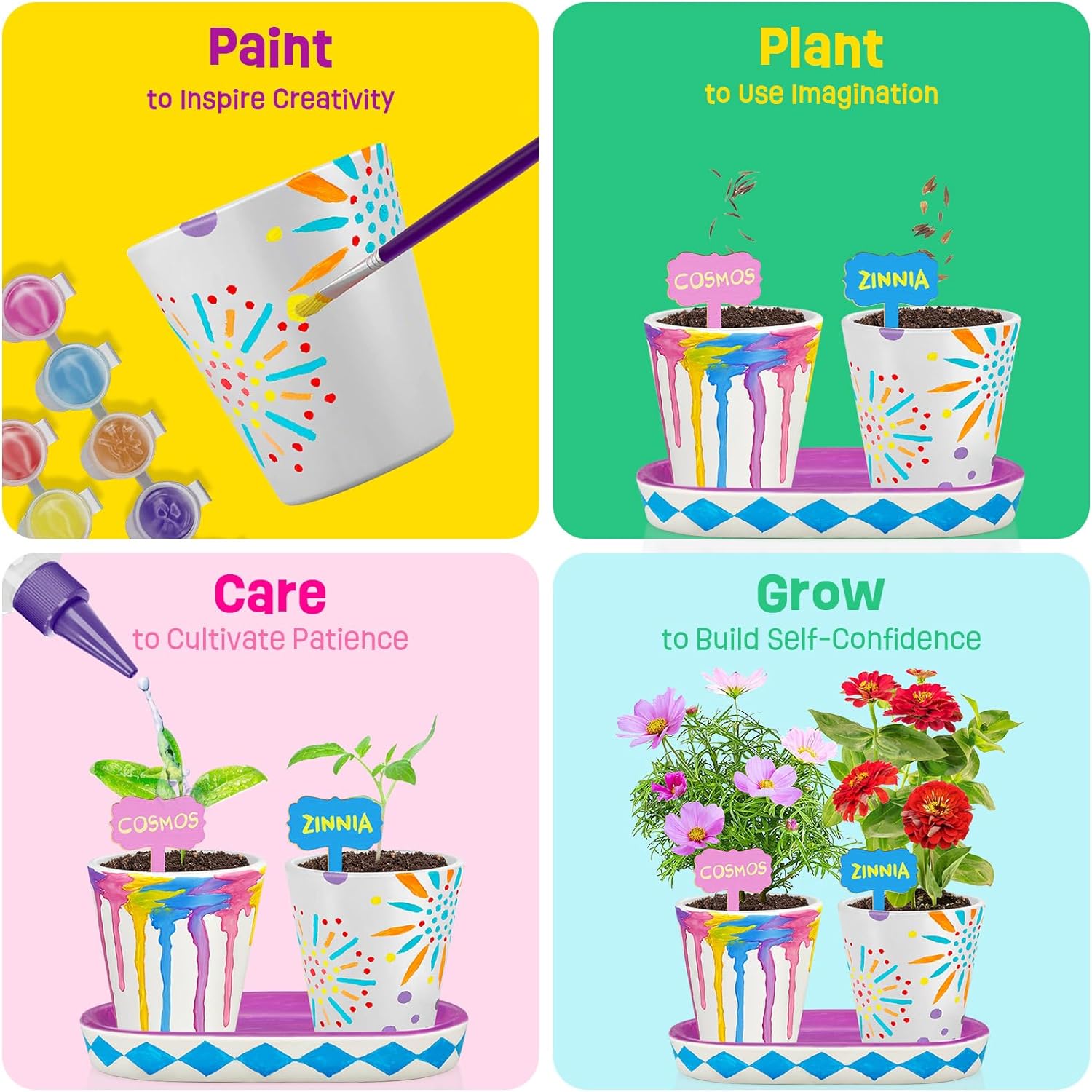 4 Set Paint & Plant Flower Gardening Kit - Gifts for Girls Ages 8-12, Arts and Crafts for Kids Ages 8-12, Kids Gardening Set, Birthday Toys Gifts for Girls Boys Ages 6 7 8 9 10 11 12