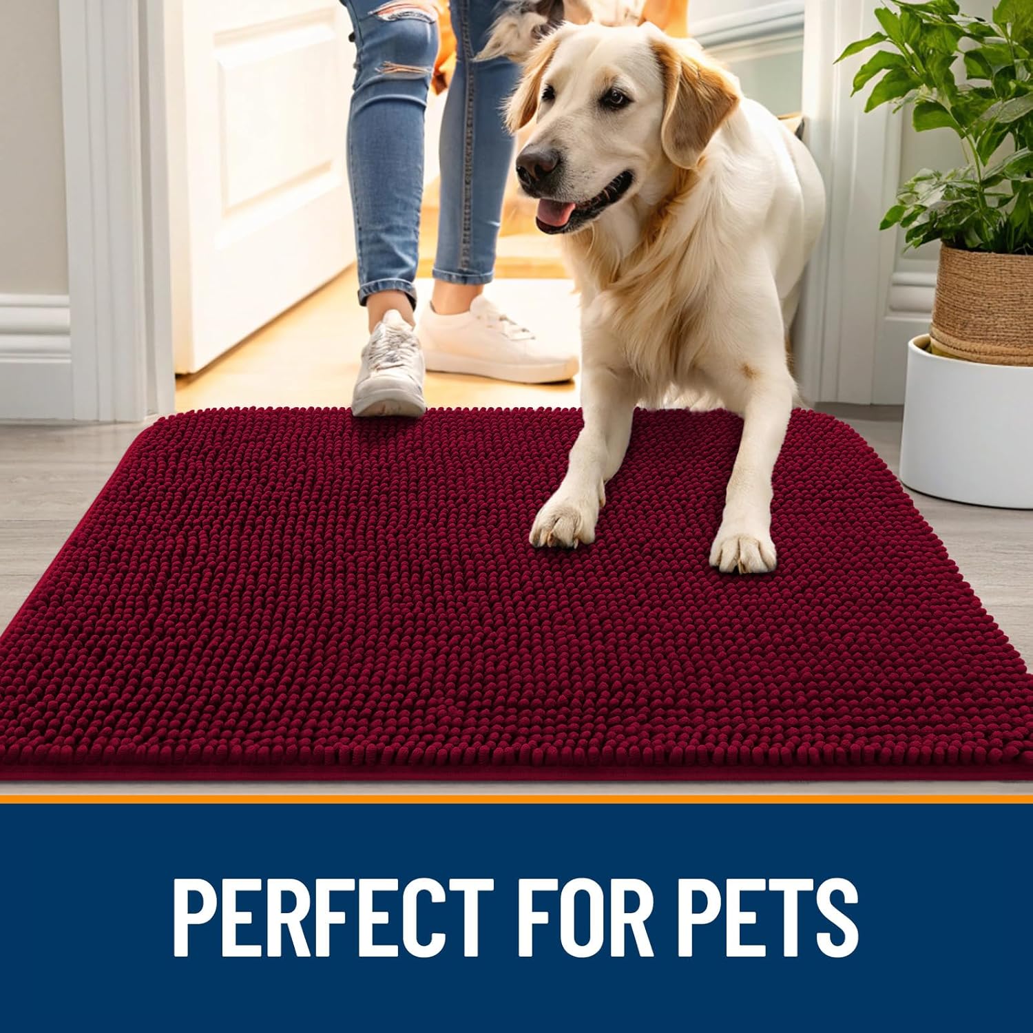 OLANLY Dog Door Mat for Muddy Paws 59x35, Absorbs Moisture and Dirt, Absorbent Non-Slip Washable Doormat, Quick Dry Chenille Mud Mat for Dogs, Entry Indoor Entryway Carpet for Inside Floor, Burgundy