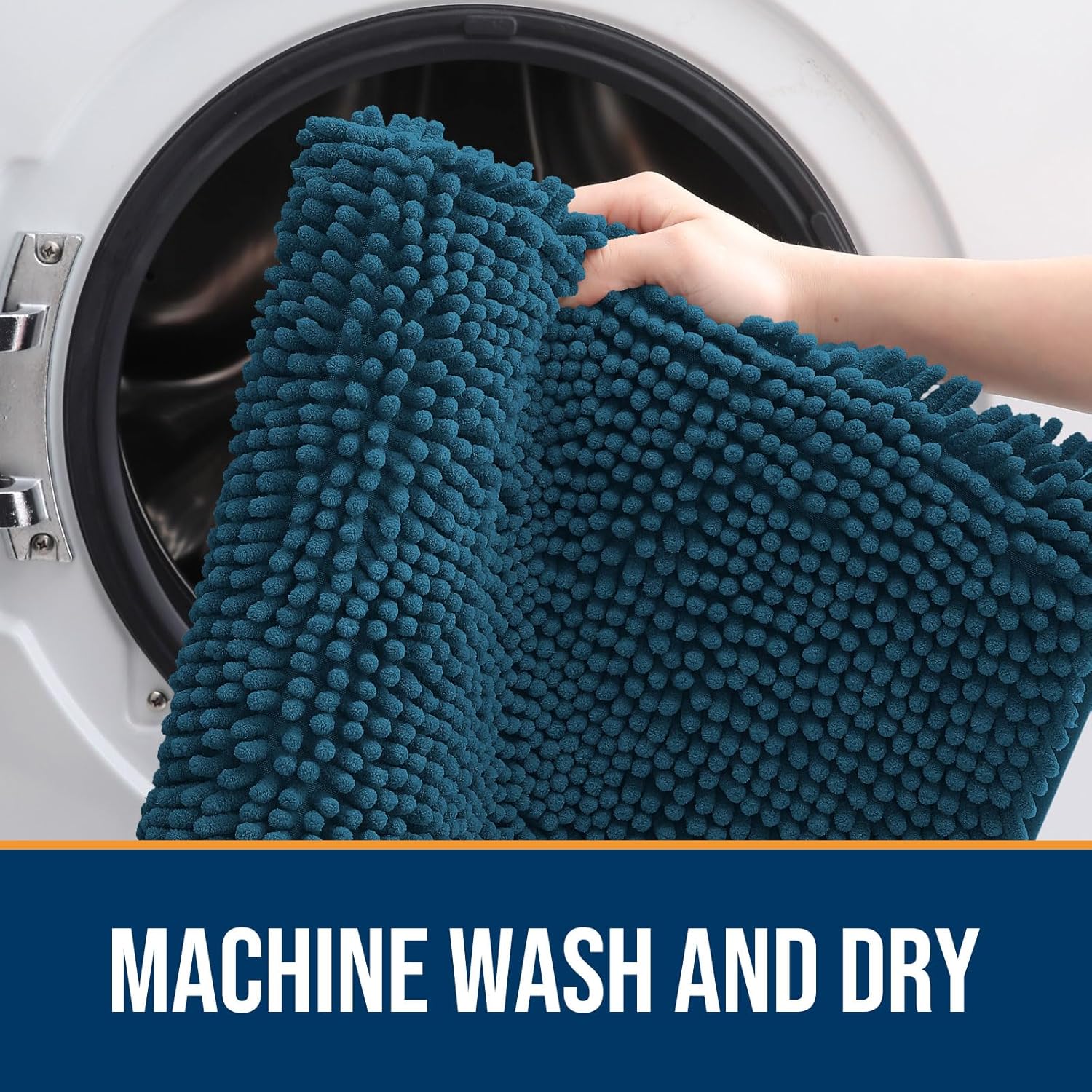 OLANLY Dog Door Mat for Muddy Paws 59x24, Absorbs Moisture and Dirt, Absorbent Non-Slip Washable Doormat, Quick Dry Chenille Mud Mat, Entry Indoor Entryway Carpet for Inside Floor, Atlantic Blue