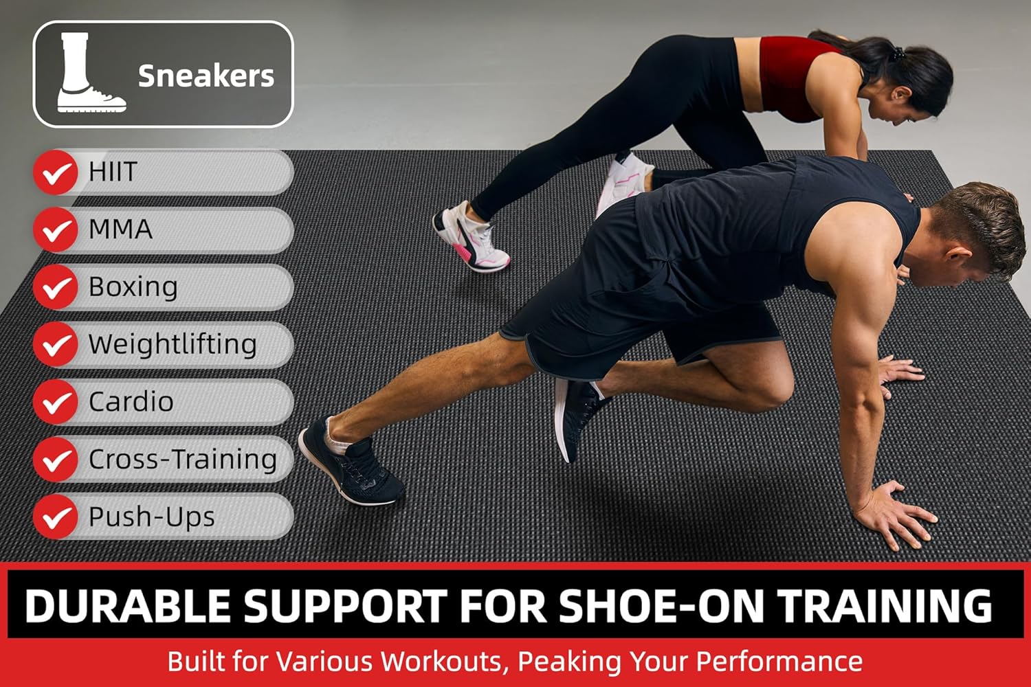 - ๐ช Ideal for High-Impact Workouts, Can Be Used with Shoes: Featuring 8mm/10mm thick cushioning, our gym mats are specially designed for high-impact exercises like weightlifting, kettlebell swings, or cardio workouts. Protect your joints and floor while staying comfortable during intense training sessions.