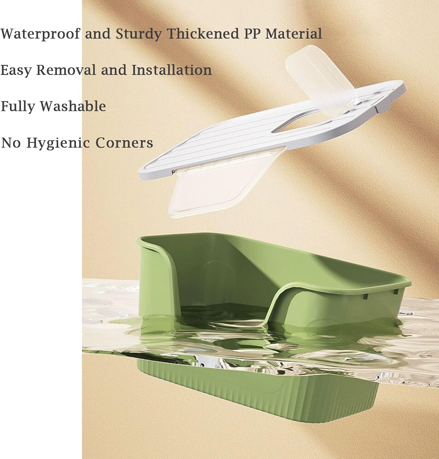 - HIGH QUALITY MATERIAL: The cat litter box lid is made of PP material, non-toxic, odorless, sturdy as well as long-lasting.