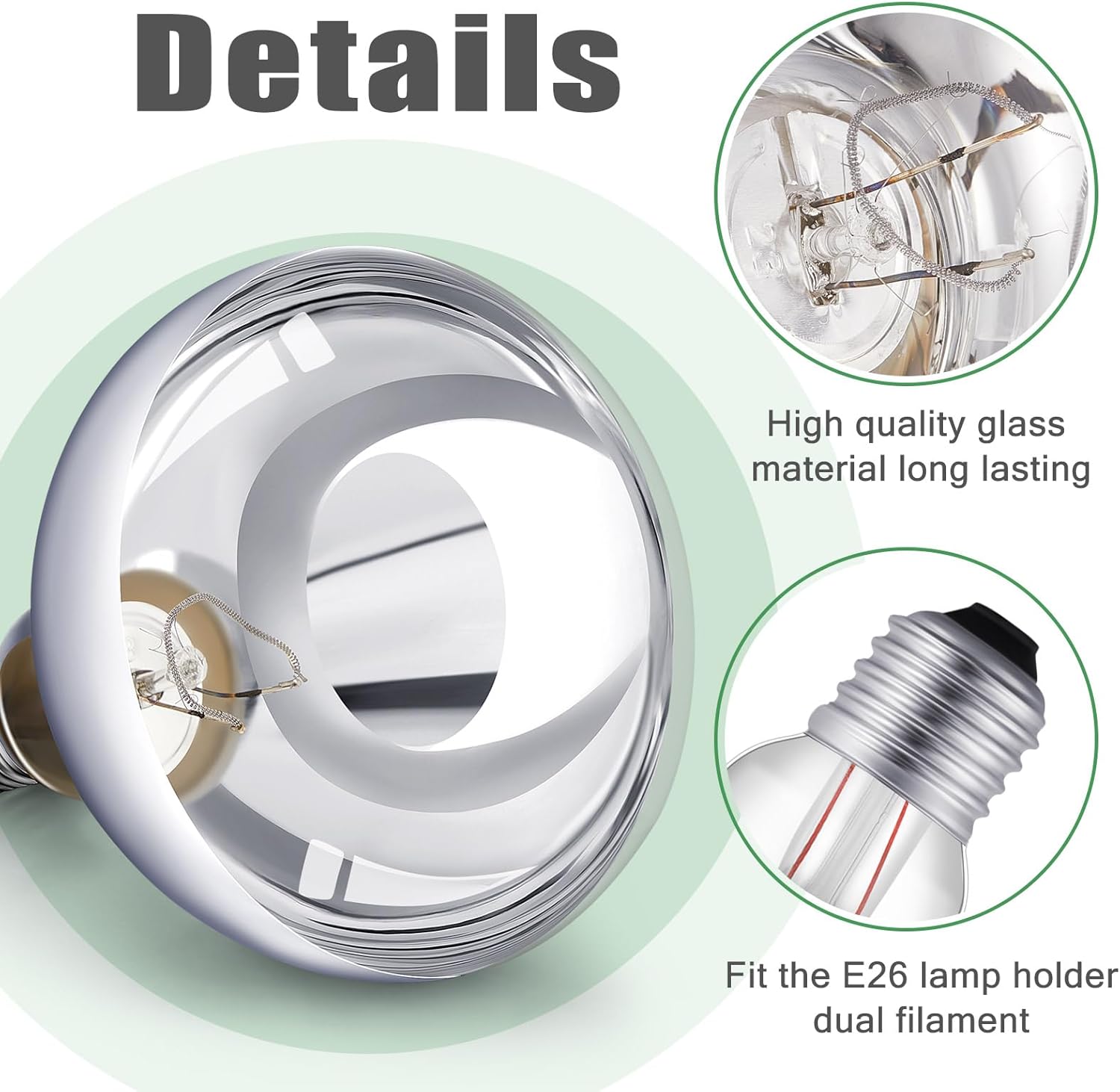 VIHOSE 4 Pack 150 Watt Heat Lamp 120v R40 Heat Lamp Bulbs Glass Incandescent Light Bulbs Incandescent Heating Lightbulbs for Reptiles Chicks Food Puppies Bathroom, Use E26 Base (Silver)