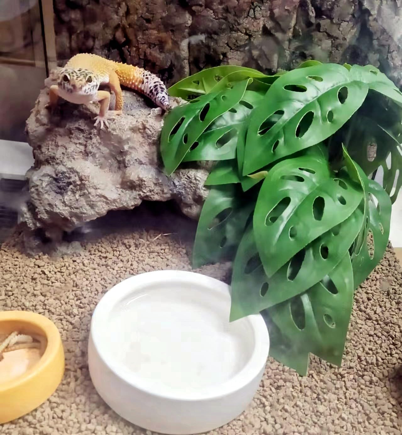 - Natural Habitat Decor: Lots of lifelike plants create a natural habitat for reptiles and amphibians, promoting a safe and relaxed environment while optimizing space utilization. The lush leaves not only serve as decorative landscaping but also provide hiding spots and climbing opportunities.