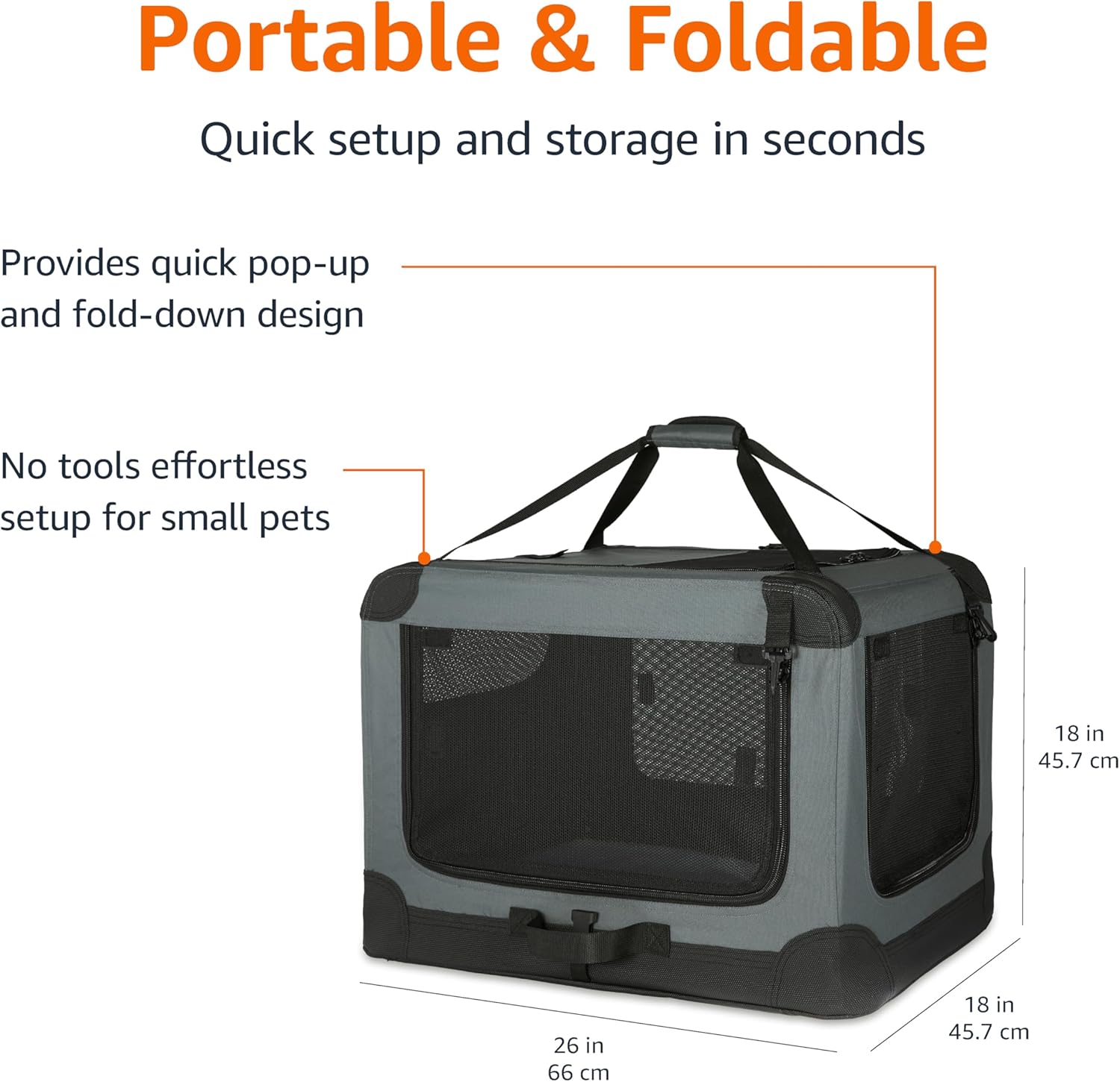 - Convenient pop-up pet crate design can be set up and folded down in seconds with no tools required