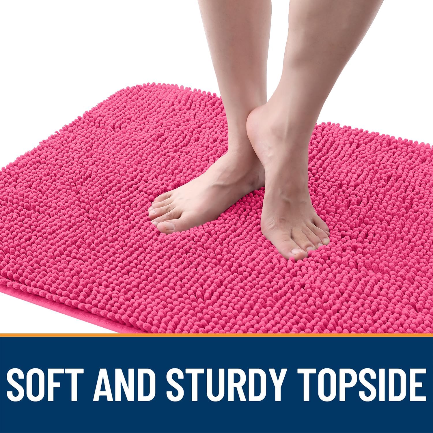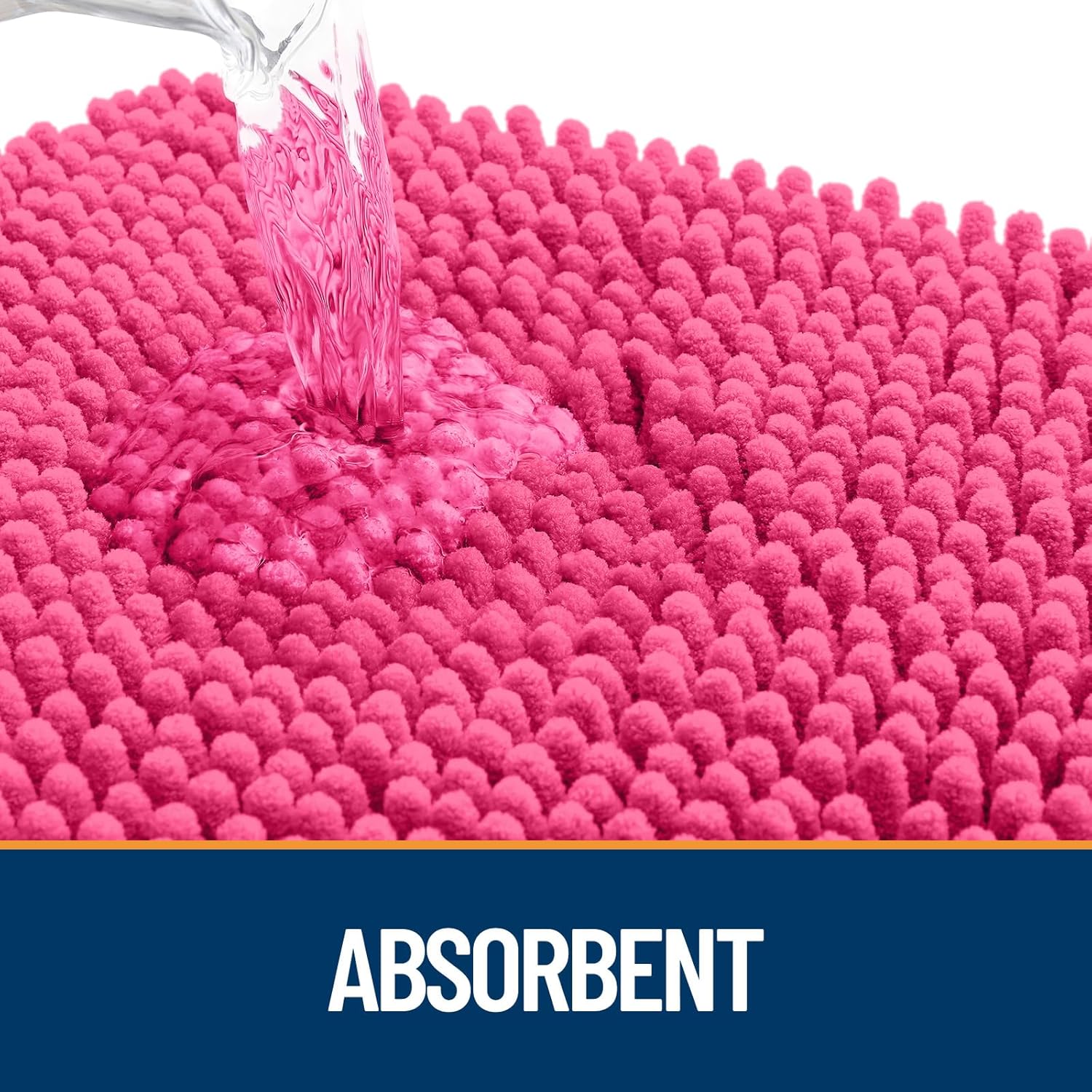 OLANLY Dog Door Mat for Muddy Paws 70x24, Absorbs Moisture and Dirt, Absorbent Non-Slip Washable Doormat, Quick Dry Chenille Mud Mat for Dogs, Entry Indoor Entryway Carpet for Inside Floor, Hot Pink