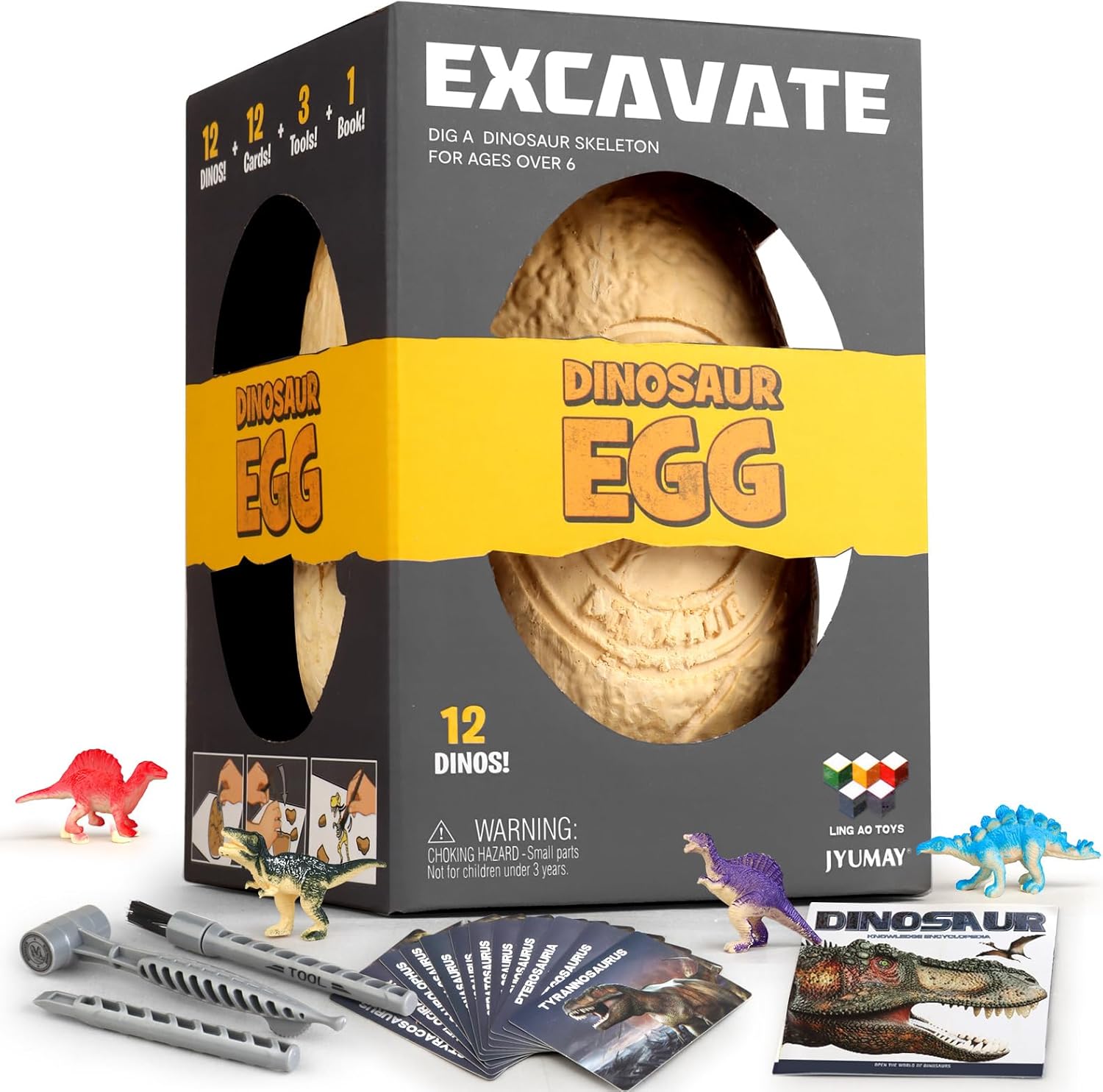 - 【 Unearth a World of Dinosaurs 】 Become a junior dinosaur explorer with our Jumbo Dinosaur Egg Excavation Dig Kit! Wield the three included digging tools to chip away at the dino egg, revealing a trove of 12 different dinosaur models hidden within. It's an archaeological adventure that brings the prehistoric to life.