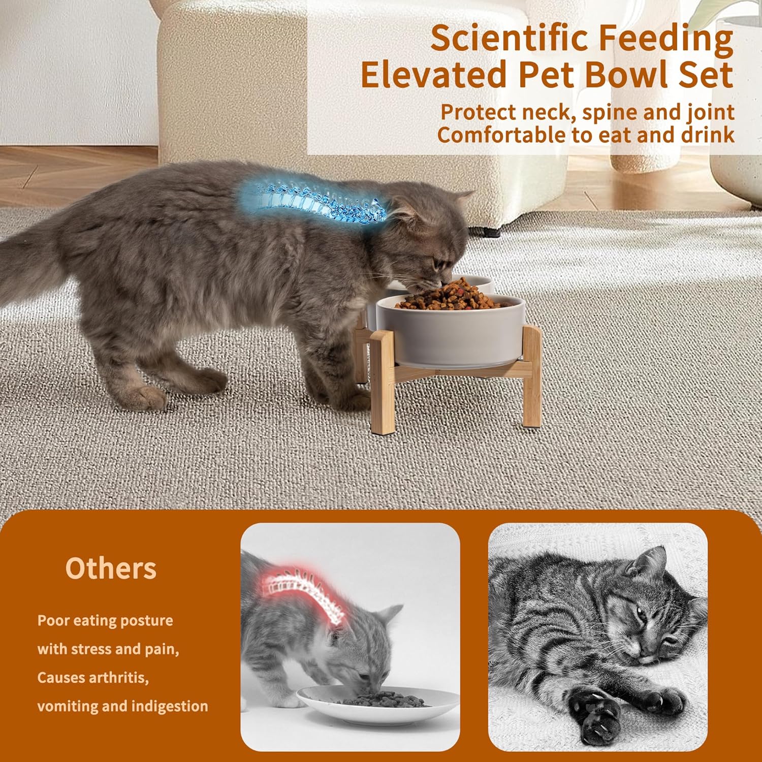 - Anti-Slip and Anti-Tipping: Each leg of the bamboo stand is equipped with rubber pad stickers to prevent the bowls from sliding when pets eat. And the thick ceramic dog dish bowl is heavy enough and stable enough, not easy to pushed down by naughty pets.
