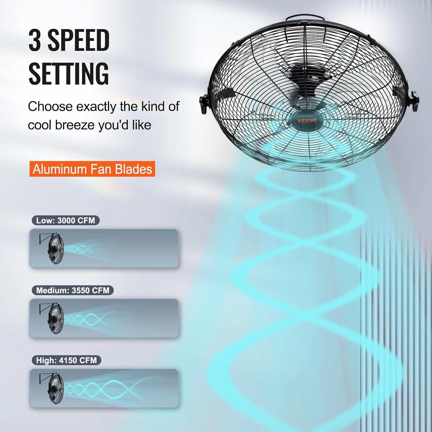 - Move Lots of Air: The metal pull-string is convenient for you to control 3 speeds. Performance is rated at a maximum of 4150 CFM with a reach of around 30 ft. Escape your air-conditioned cave and enjoy the outdoors, even in peak heat.