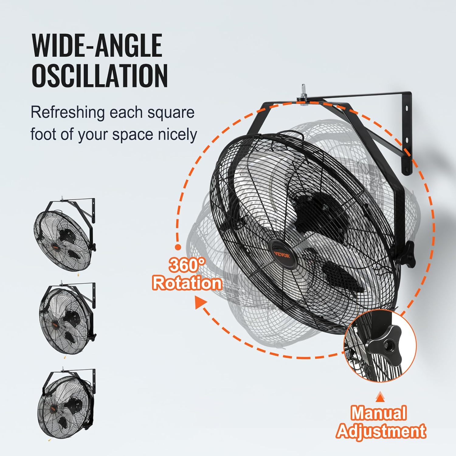 - Adjustable Wall Mounted Fan: Get ready to reach every corner of the room! The 18'' weatherproof wall fan can be tilted vertically for optimum airflow. Get ready for a complete heavy-duty metal construction with aluminum blades for easy disassembly and cleaning.