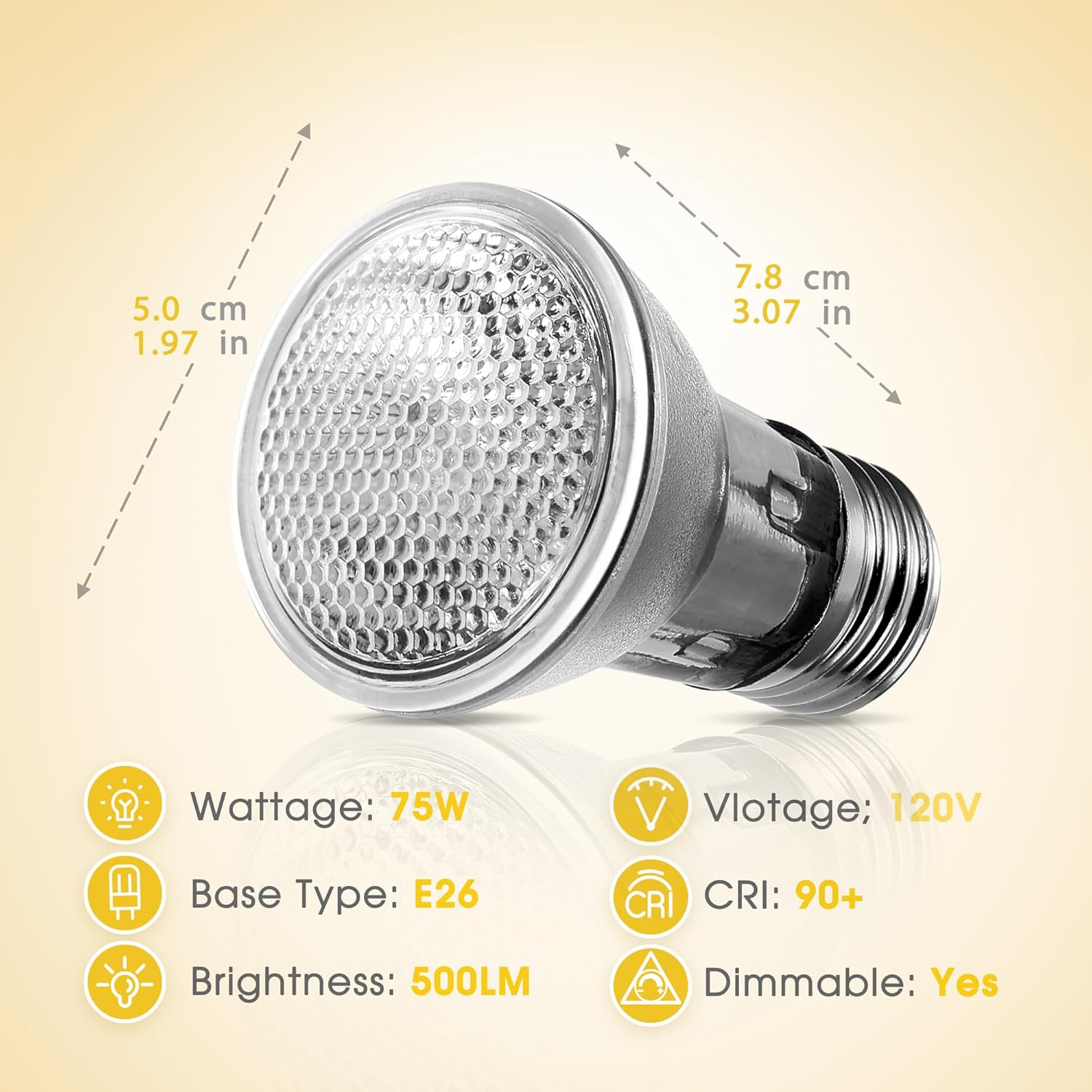 Reptile Heat Bulb 2 Pack, 75W UVA Reptile Light Bulbs, Dimmable Heat Lamp Bulbs Basking Spot Light Bulb for Reptiles, Amphibian, Bearded Dragon, Lizard, Chicken