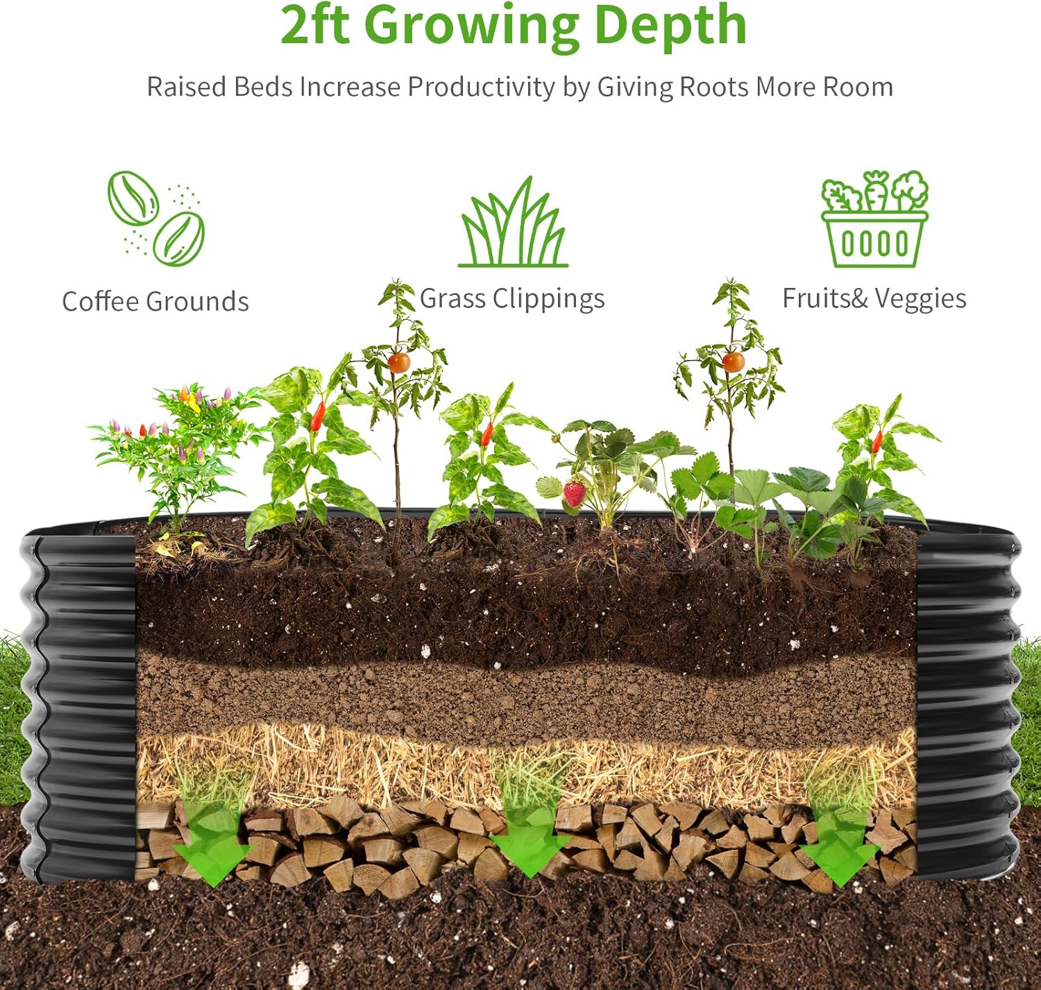 - Open bottom: Sits on the ground raised beds, provides good drainage, allow the roots get the nutrients to keep moist, make the plants grow better.