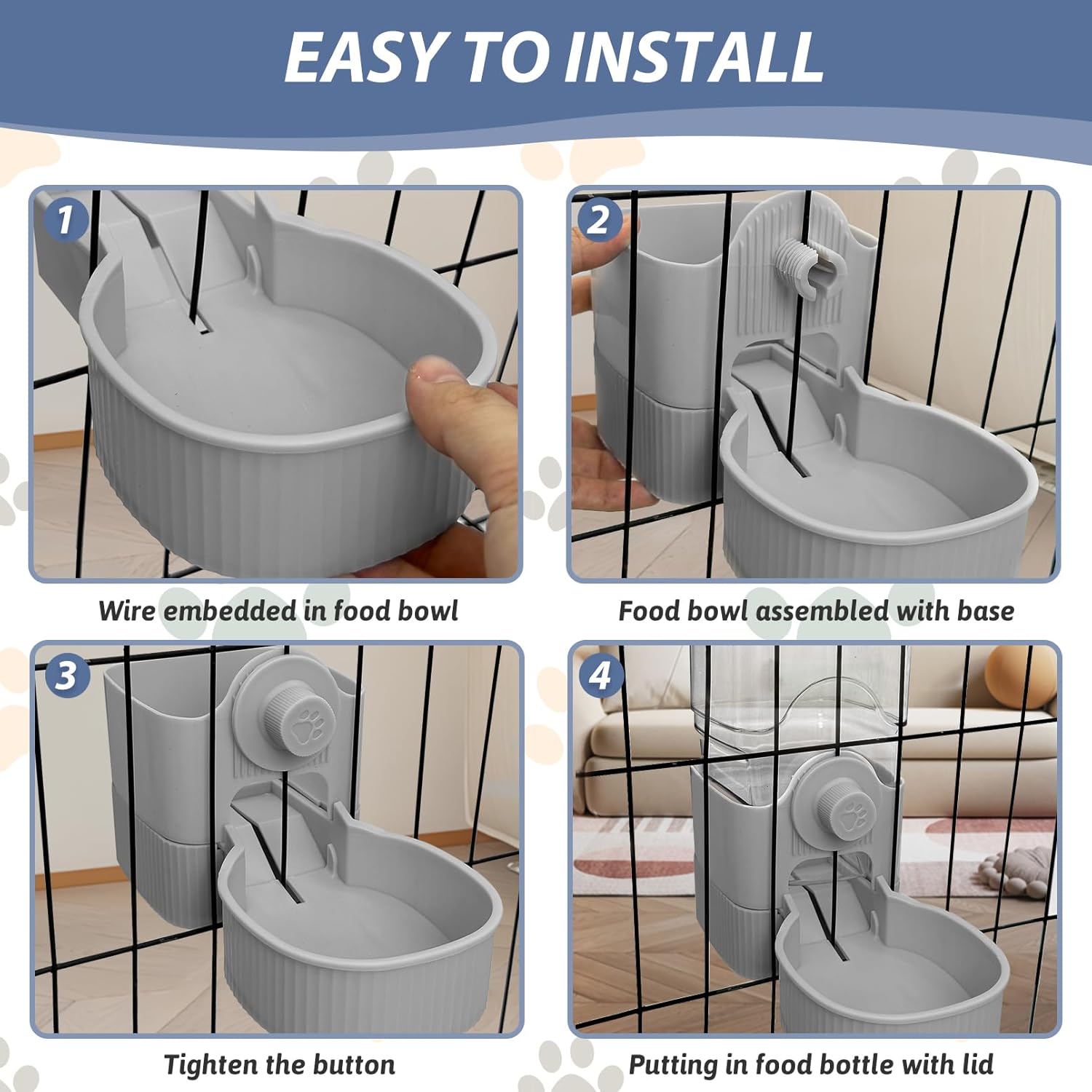 - ๐ฐ [Easy to Use]: Bunny feeder for cage has a lid on the top for easy refilling of pet food. The water bottle needs to be removed to unscrew the lid to refill. It is recommended to clean it 1-2 times a week to provide your pet with a more hygienic and comfortable eating experience