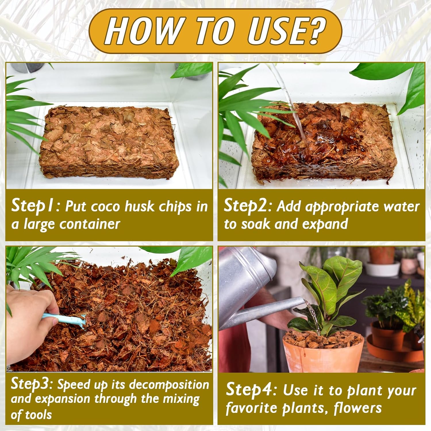 - ๐๐จ๐๐จ ๐๐ฎ๐ฌ๐ค ๐๐ก๐ข๐ฉ๐ฌ ๐๐ซ๐ข๐๐ค ๐๐จ๐ซ ๐๐ฅ๐๐ง๐ญ๐ฌ: Crafted from compressed natural coconut husk chips, each lightweight 1.1 lb brick transforms into a generous 7 quarts of flaky, airy substrate when hydrated. Perfectly revitalizes garden soil or potting mix enhances aeration, drainage, and moisture retention for healthier root growth. Or, spread it as a beautiful, weed-suppressing mulch to elevate your landscape's natural beauty