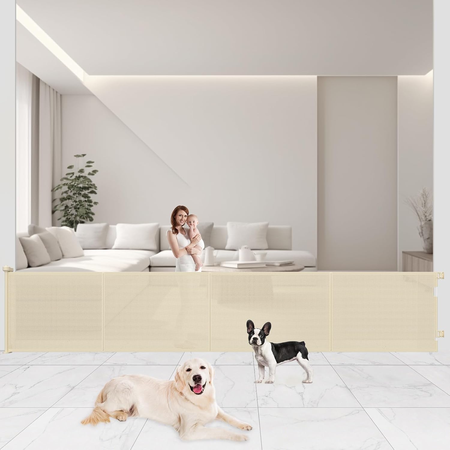 Upgrade 200" Retractable Baby Gates Extra Wide with Reinforced Strips, Mesh Retractable Dog Gate for Garage, 41" Tall Retractable Gate Indoor Outdoor for Pet and Baby-Beige