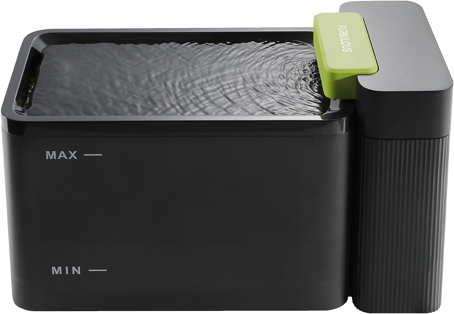 Furbulous 316 Stainless Steel Automatic Water Fountain with Ultrafiltration Tech, 3.3L/112oz Large Bowl, Ultra-Quiet, BPA-Free Dish Two Modes Water Dispenser for Cats/Medium Dogs/Pets (Black)