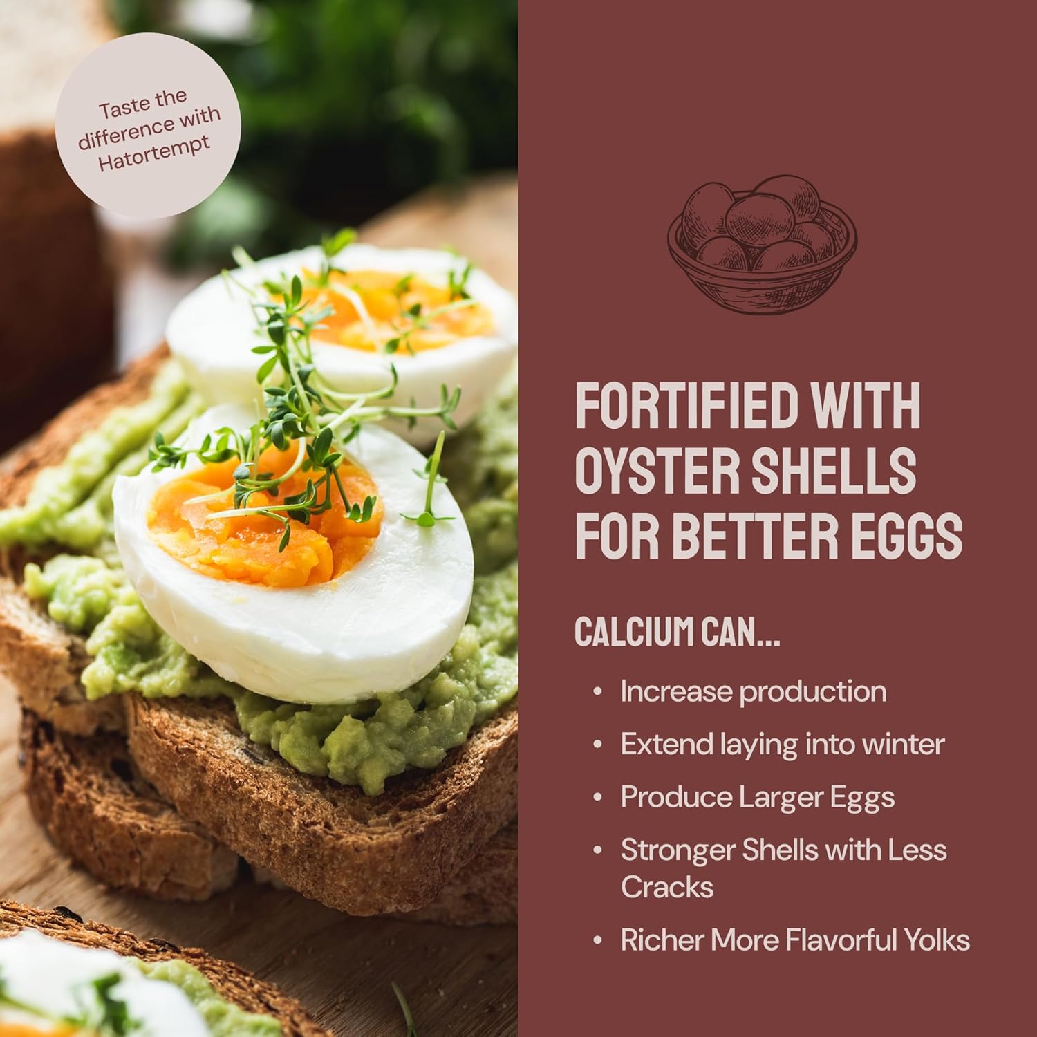- 5% Calcium with Oyster Shell: Hatortempt's feed is 15% crushed oyster shells for chickens. Providing chicken oyster shells for laying hens supplies slow-release calcium, known to support bone health, prevent deficiencies, and improve egg quality