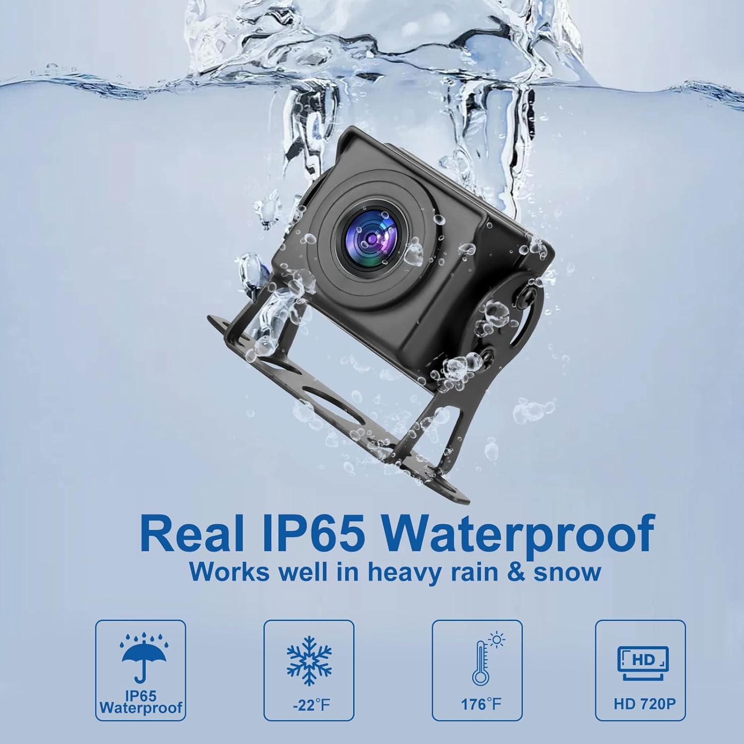 - 【IP65 Waterproof】The back up camera housing is made of high quality ABS material, reverse camera for car with IP65 waterproof, rear view camera designed with fully sealed glue filling craft, absolutely no need to worry about water, fog or mist inside, Travel on rainy days without worry.
