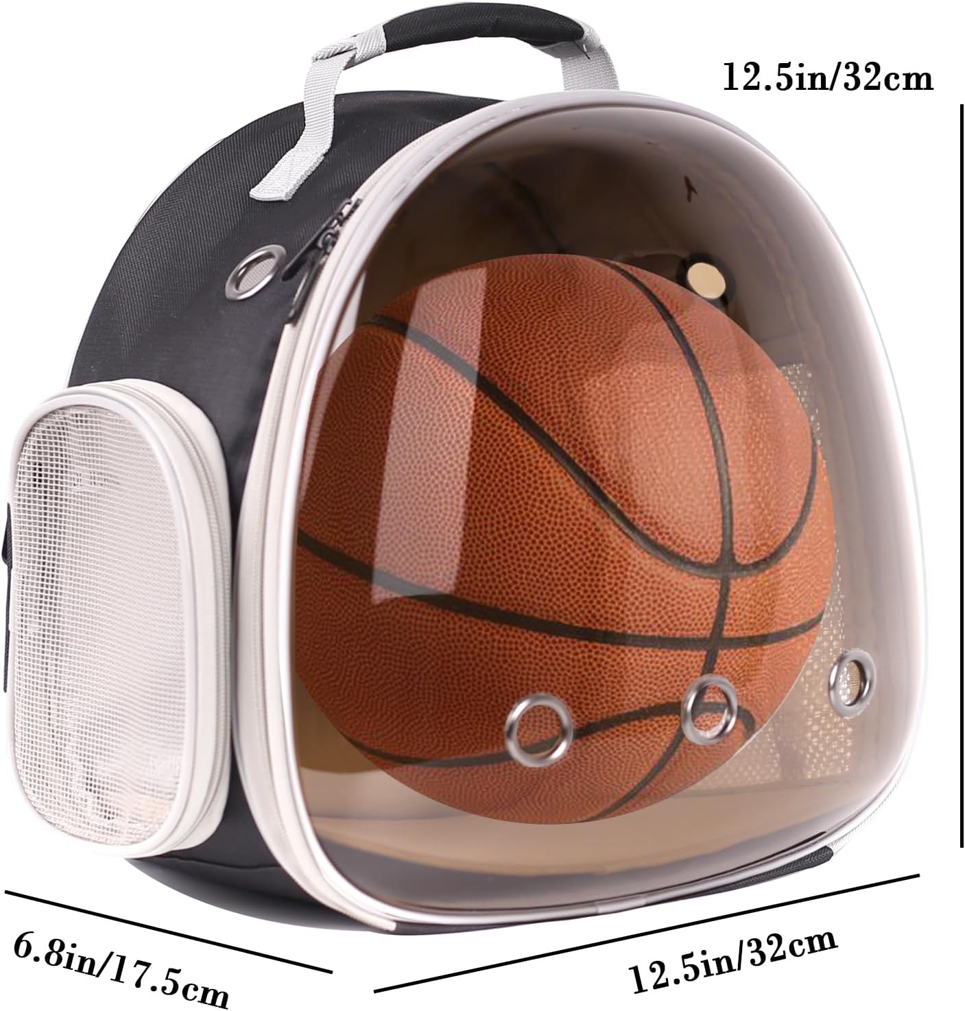 - Dimension:The small animal backpack carrier size is 12"L x 10"W x 10"H, fits a 7" basketball,with big enough room for bearded dragon ,guinea pig, rabbit, ferret,squirrel, hamster, parrot, small dog, cat and other animals.