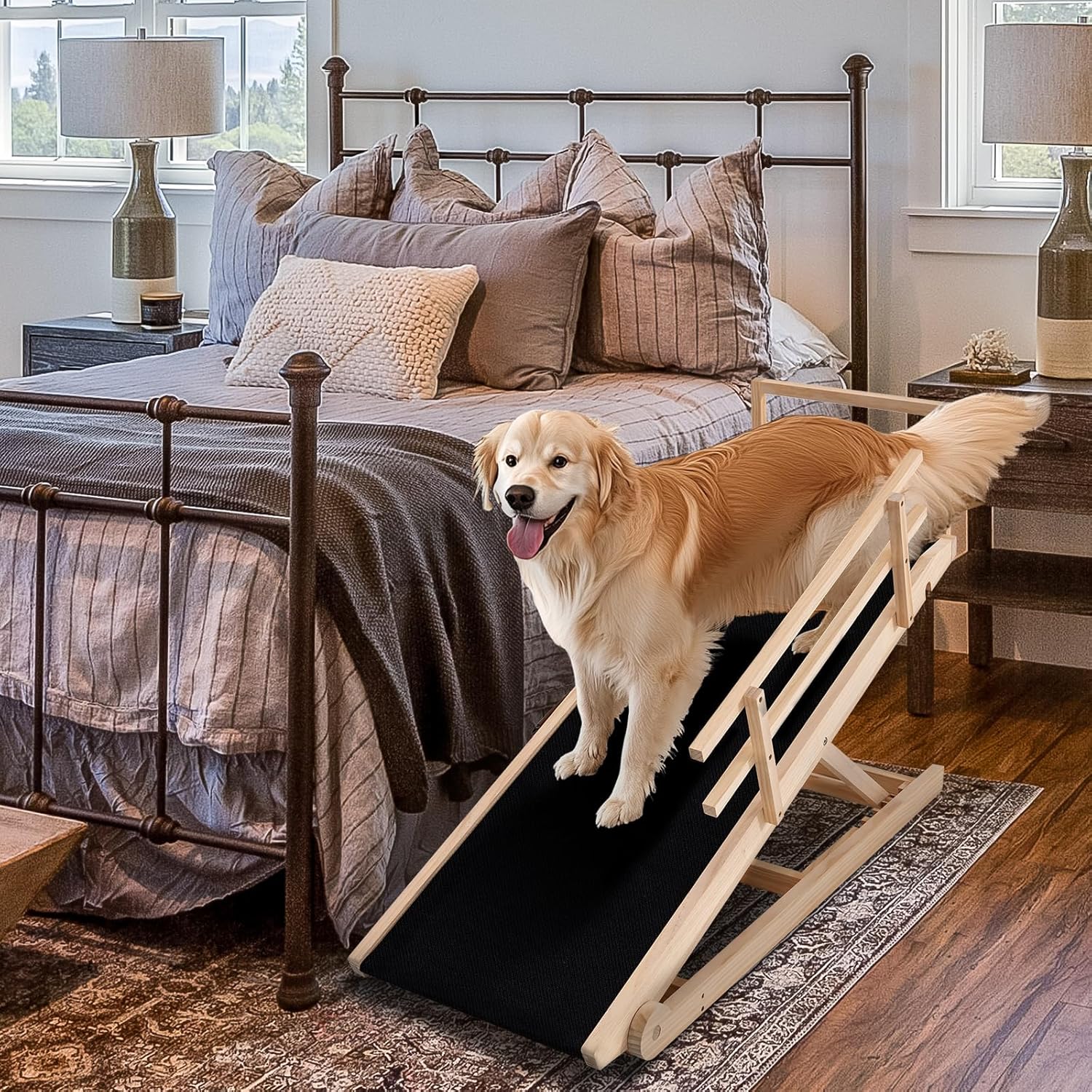 - STURDY & DURABLE: Our pet ramp for dogs and cats is specially made very well - solid wood construction and sturdy stainless steel fasteners, which has been tested to support up to 200lbs. When they jump off the bed, sofa, and sofa, there is no need to worry about getting injured, which provides safety for your pet.