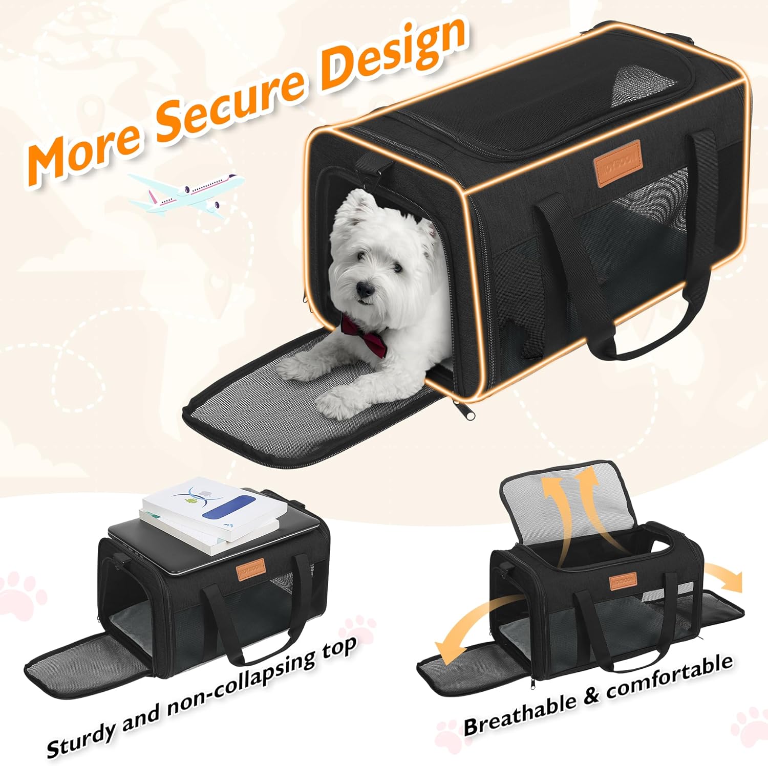 - 【TSA-Approved Pet Carrier in Cabin】 It is mainly designed for Alaska Airlines: 17x11x9.5", but also in compliance with Southwest Airlines: 18.5x13.5x9.5"; Delta Airlines: 18x11x11"; United Airlines: 18x11x11"; American airlines: 18x11x11"; Air Canada: 21.5x15.5x10.5"; So we recommend you buy this carrier when you fly with the airlines mentioned above