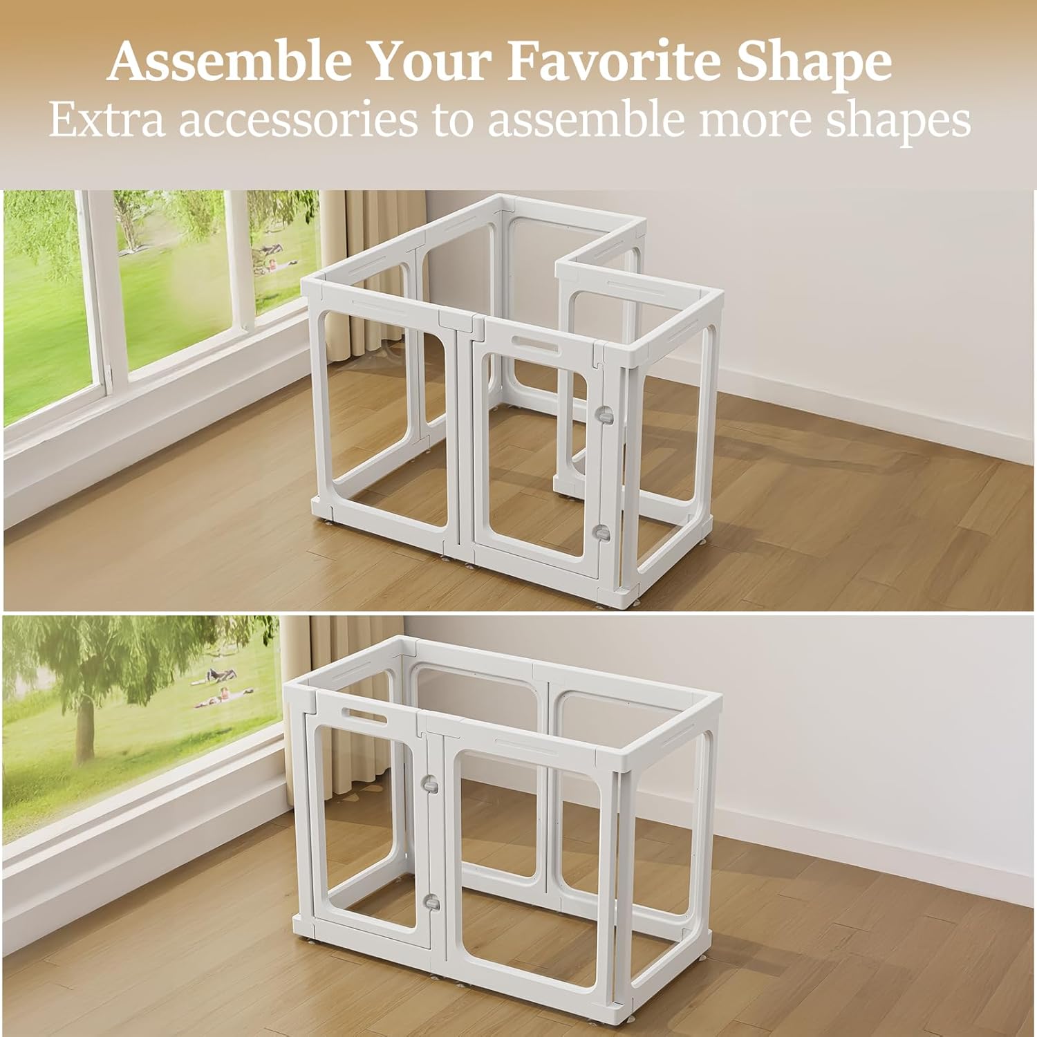 - 【MODERN & BEAUTIFUL DESIGN】- Our dog playpen breaks the traditional cage fence design, made of bright and transparent material, like a bright pet home, more beautiful, easy to clean, so that your pet is no longer anxious, no longer feel imprisoned, no longer worry about your pet getting stuck in the playpen, and it is also convenient for you to observe your beloved pets.